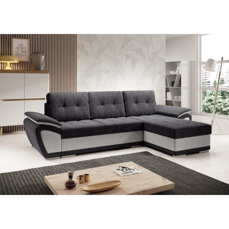 Rohová sedacia súprava ENIF patrí do sedacích súprav vhodných aj do menších obývacích izieb. Svojou farebnou kombináciou látky Orinoco oživý nejeden interiér. Je rozkladacia, čím vytvorí priestor na spanie s rozmerom 130x200 cm. Na komfortnom sedení sa podpisuje výplň sedacej súpravy v podobe pružina falista a pur pena. O komfortné opretie unaveného chrbta sa postarajú opierky v podobe dekoratívne prešitých vankúšov. Vkusne prešitá je aj sedacia časť. ENIF ROH je postavený na plastových nožičkách v striebornej farbe. Taktiež disponuje úložným priestorom, vhodným na ukladanie sezónnych prikrývok, diek a podobne.
