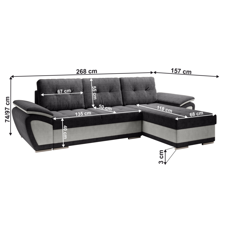 Rozmery (ŠxHxV): 268x157x97 cm