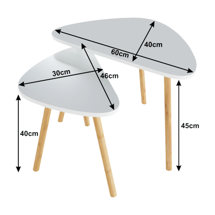 Predstavujeme vám atraktívnu sadu konferenčných stolíkov BISMAK, ktoré vytvoria vo vašej domácnosti príjemnú a útulnú atmosféru. Korpus stola je vyrobený z MDF v bielej farbe, nohy sú z prírodného lakovaného bambusu. Využite bohatú odkladaciu plochu, a odložte si naň nedočítané noviny, koláčiky pre hostí, šálku kávy alebo nohy po dlhom únavnom dni. Tiež poslúži ako podstavec na kvetináč s izbovými rastlinami.