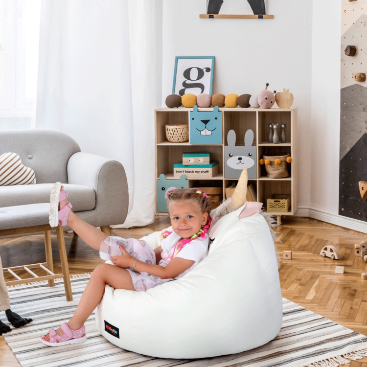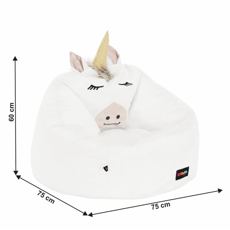 Vyrobený je z látky v bielej farbe. Vyplnený je polystyrénovým guľôčkami, ktoré sú zdravotne nezávadné.