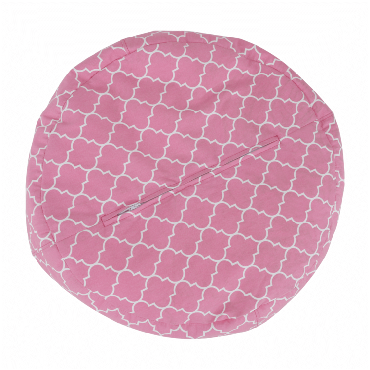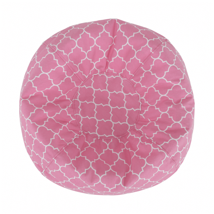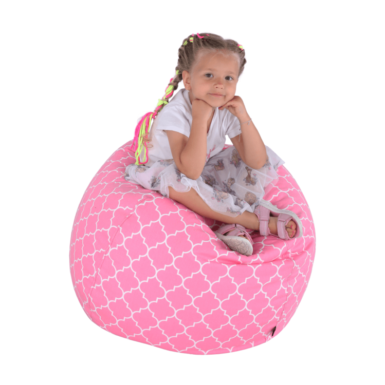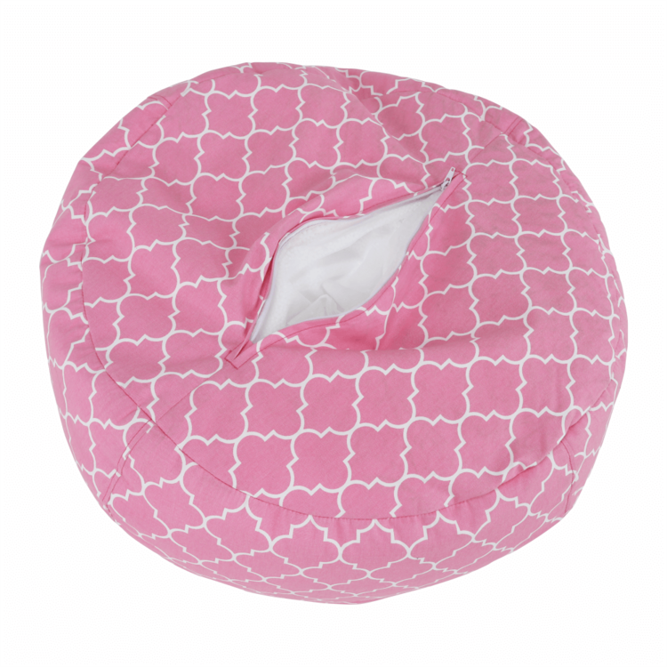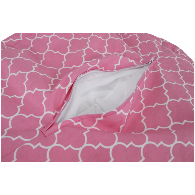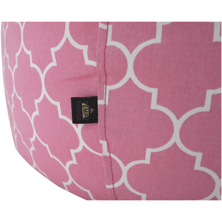 Jeho výplň tvoria polystyrénové guľôčky, ktoré sa prispôsobia každému záhybu tela. Vyrobený je z látky v prevedení ružovo-biely vzor.