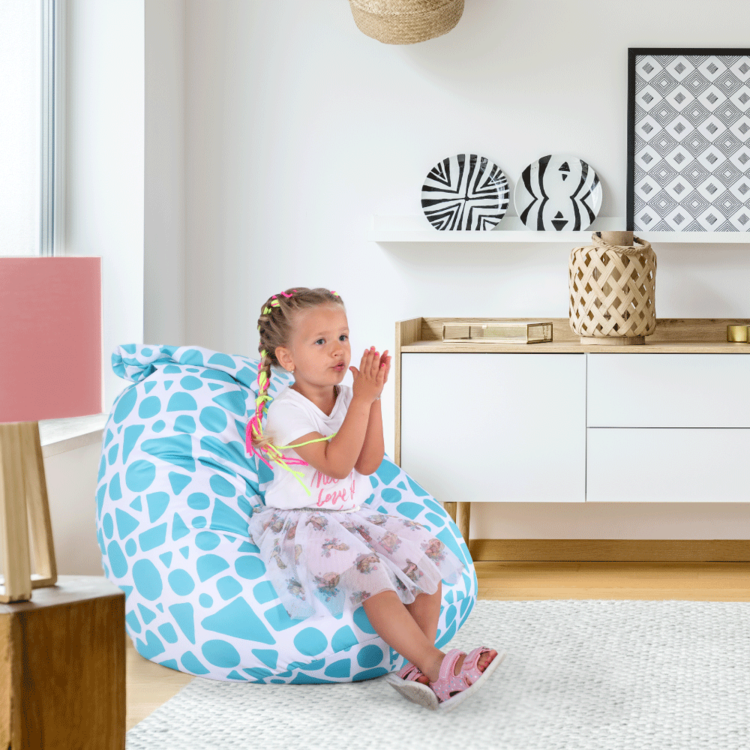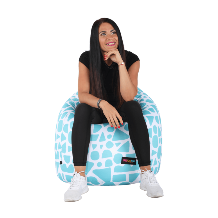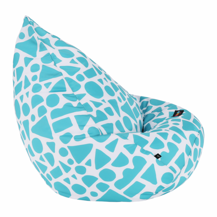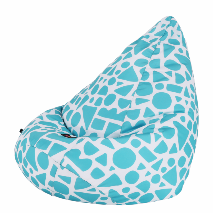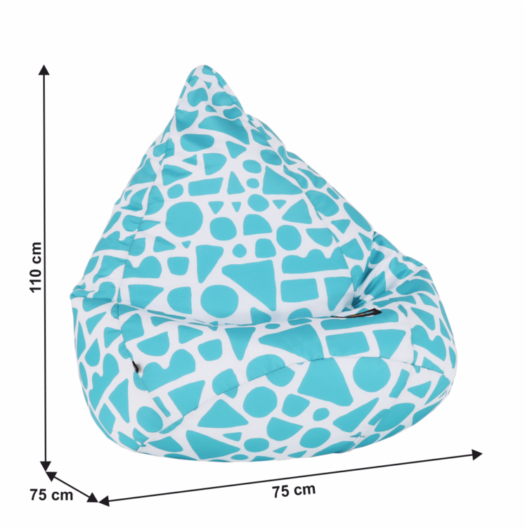 Výplň tvoria polystyrénové guľôčky, ktoré sa dokonale prispôsobia každej časti vášho tela. Vak je vyrobený z látky v prevedení tyrkysovo-biela so vzorom.