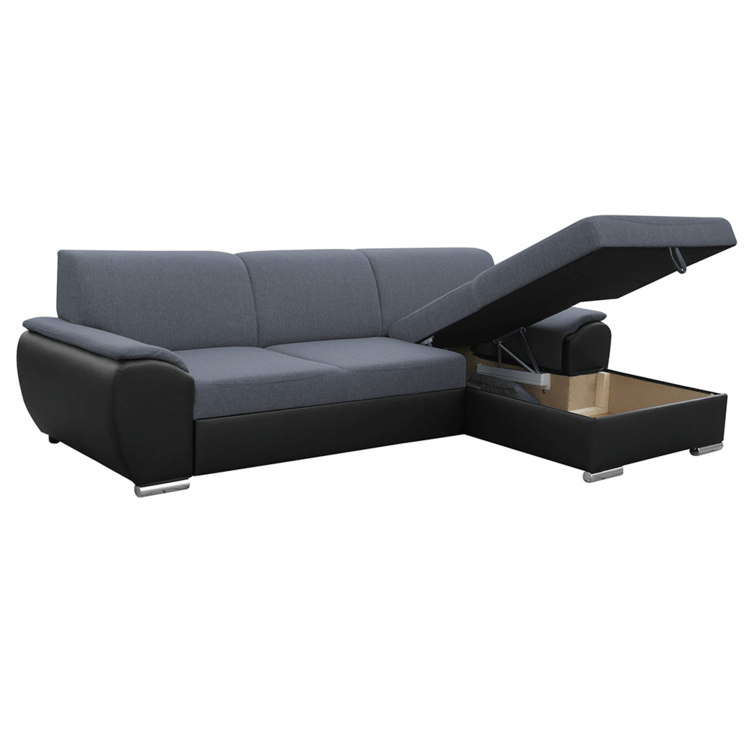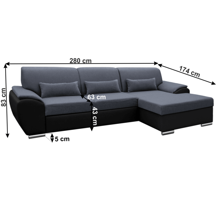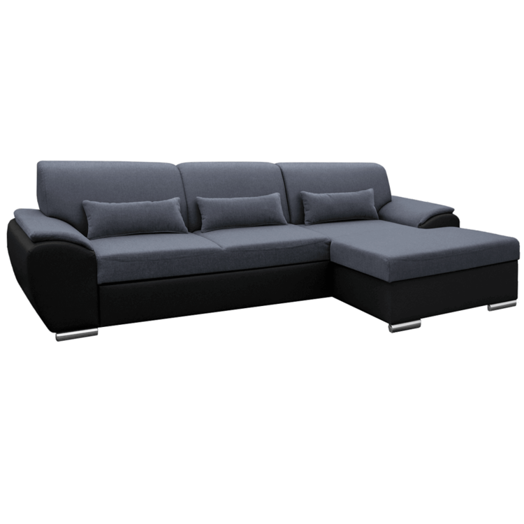 EMILY ROH MALÝ je štýlová, celočalunená rohová sedacia súprava s viacerými vychytávkami, ktorá presvedčí multifunkčnosťou. Sedačka je celočalúnená, vo farebnom a materiálovom prevedení čierna ekokoža a tmavosivá látka Soro.Je možné ju rozložiť na pohodlnú posteľ s rozmerom 130x210 cm. Určite oceníte úložný priestor. Súčasťou sedacej súpravy sú aj 3 dekoratívne vankúše.