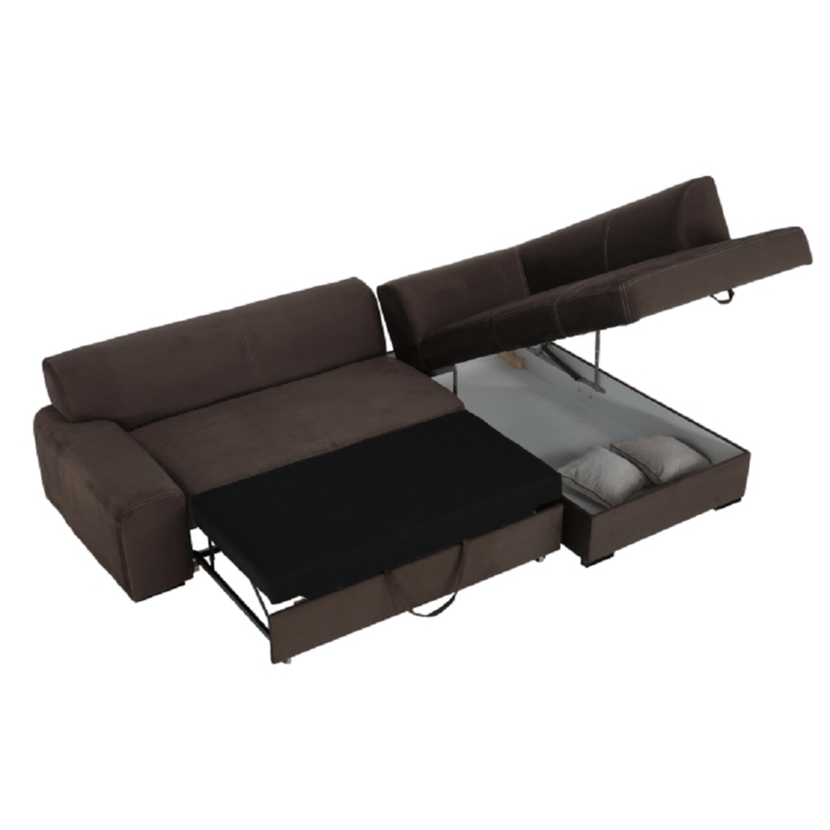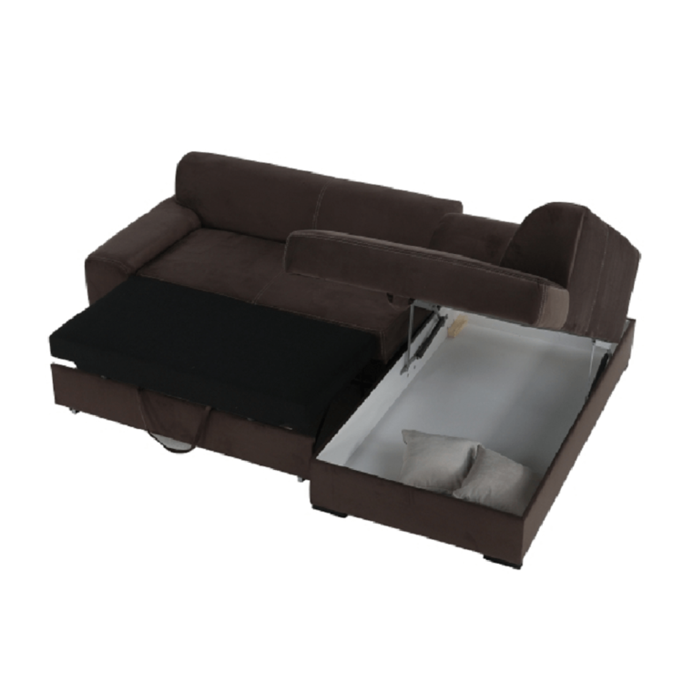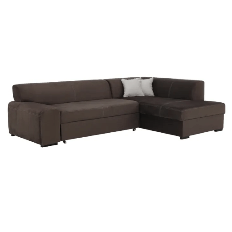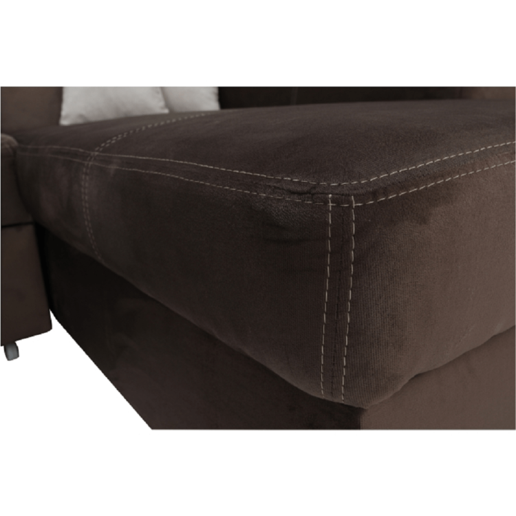 Štýlová sedačka s pohodlnými opierkami sa dodáva s dvoma dekoratívnymi vankúšikmi. Čalúnená je kvalitnou látkou v hnedej farbe, ktorá je príjemná na dotyk. V pravom prevedení. Vďaka funkcii rozkladania poskytne vám a vašej návšteve priestor na príležitostné spanie s rozmerom 135x195 cm. Svoje tajomstvá si pokojne uschovajte v úložnom priestore.