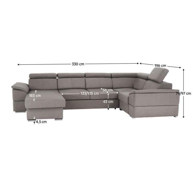 Rozmery: (ŠxHxV): 330x183/196x79/97 cm