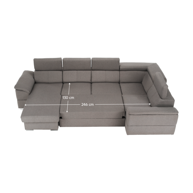 Príťažlivou ju robí aj celočalúnené prevedenie, preto ju bez obáv môžete umiestniť aj do priestoru. Eleganciu jej dodáva kvalitná látka Malmo v sivohnedej Taupe farbe. Zdvihnuté, či sklopené. Nastavte si ich podľa chuti. Polohovacie opierky hlavy sú slasťou pre vaše stuhnuté svaly. 4 opierky hlavy sú polohovacie. Viete si ich nastaviť a zaistiť až v šiestich stupňoch. Segoria disponuje aj úložným priestorom. Je rozkladacia, pohodlne sa na nej vyspia dvaja ľudia. Plocha na spanie dosahuje rozmerov 130x246 cm.