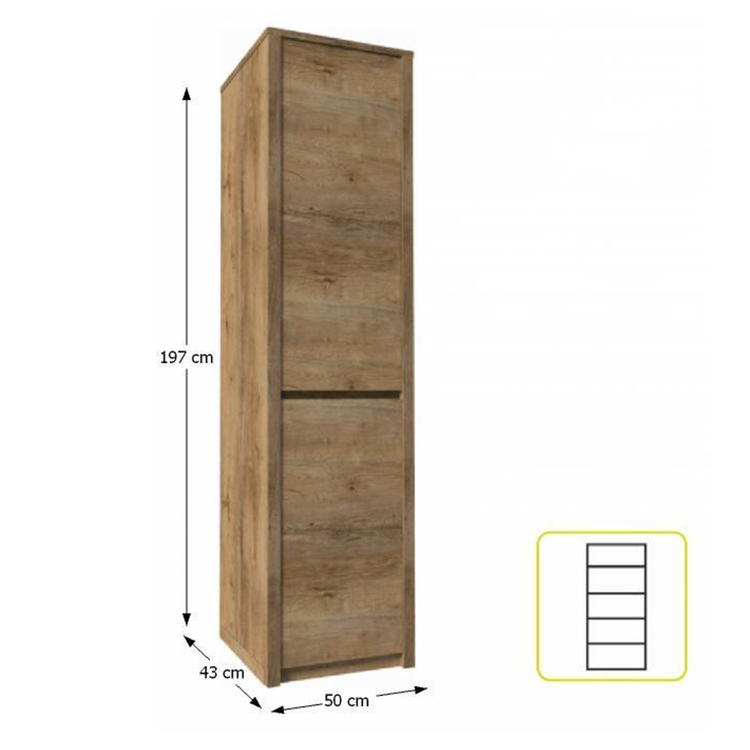 Skriňa MONTANA S1D je jednodverová s policami za dvierkami. Jej moderný dizajn bez úchytiek pôsobí veľmi elegantne.