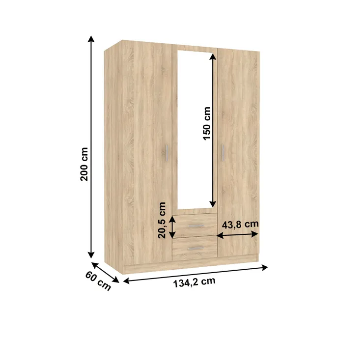 Trojdverová so zrkadlom vás každý deň prekvapí tým, čo všetko sa do nej zmestí. Je priestranná. Na ľavej strane je vešiaková tyč s dvoma šuplíkmi. Na pravej strane štyri police predeľujú priestor na päť úložných plôch.