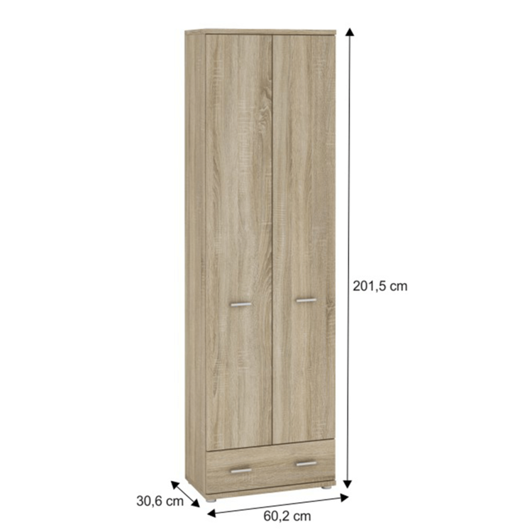 Skriňa Typ A komponent z predsieňovej zostavy MARIO NEW, poskytne vám dostatok úložného priestoru. Vyrobená je z kvalitnej DTD laminovanej vo farebnom prevedení dub sonoma. Vo vnútri skrine sa nachádza vešiaková tyč s policou. Ďalšiu policu nájdete v spodnej časti skrine. Šuplík poskytuje miesto pre rukavice, šatky alebo slnečné okuliare.