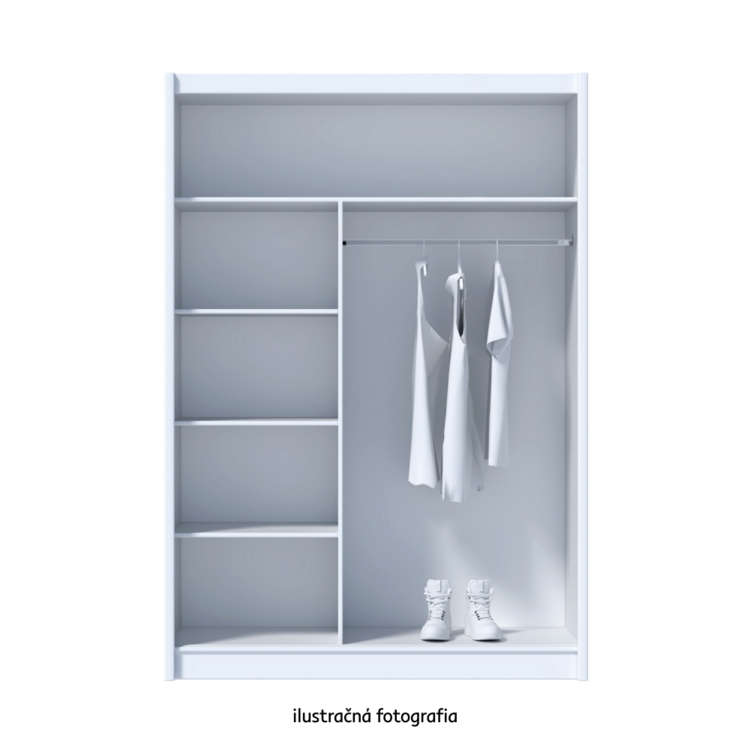 Skriňa LADDER s posuvnými dverami je vyrobená z kvalitnej laminovanej drevotriesky, doplnená lištami z MDF. Za kvalitu hovoria aj ABS hrany, ktoré sú odolnejšie voči poškodeniu pri každodennom používaní. Pýchou skrine sú lamely, ktoré zdôrazňujú charakter a pôsobia veľmi moderne. Farebná kombinácia biela a dub craft vás očarí a oživý nejeden interiér. Dominantou skrine je zrkadlo, v ktorom si skontrolujete svoj zovňajšok, upravíte sa a môžete vyraziť. Svoj úložný priestor ponúka v podobe vešiakovej tyče a políc. Vrchnú časť skrine tvorí polica.