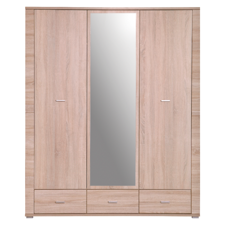 Hrany jednotlivých komponentov sú ukončené vrúbkovanou lištou. Farebné prevedenie: dub sonoma.