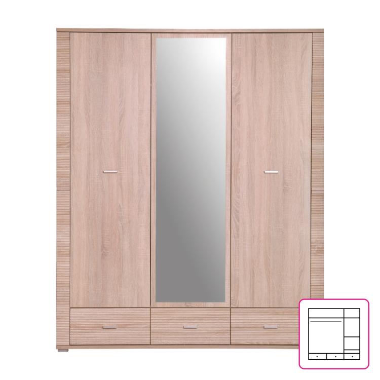 Skriňa vešiaková typ 02, s troma policami a troma zásuvkami, vhodná na zariadenie spální,