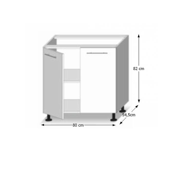 Spodné skrinky sú dodávané s pracovnou doskou (okrem skrinky D80ZL) a dolnou lištou. Možnosť dokúpiť drez v cene 67 Eur. Možnosť dokúpiť pracovnú dosku 38 mm v cene 43 Eur/bm.