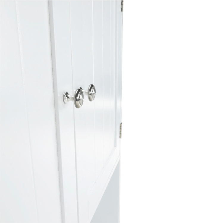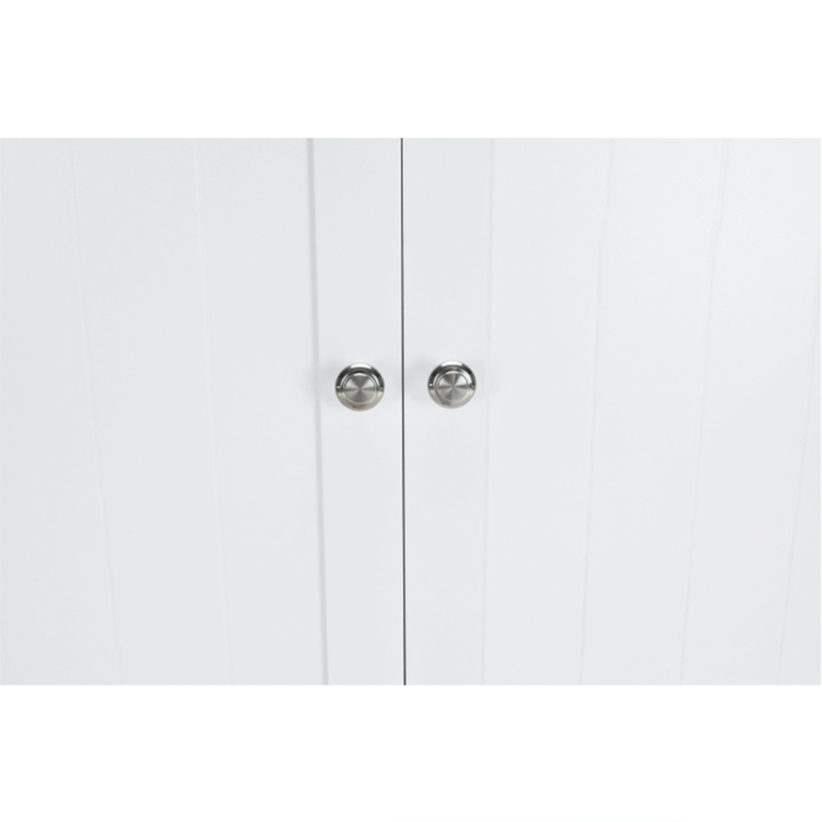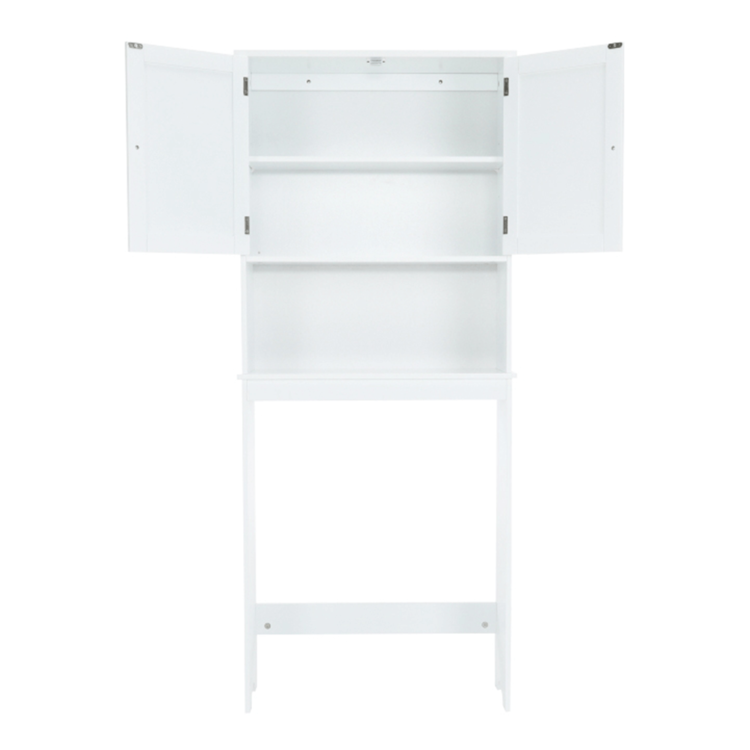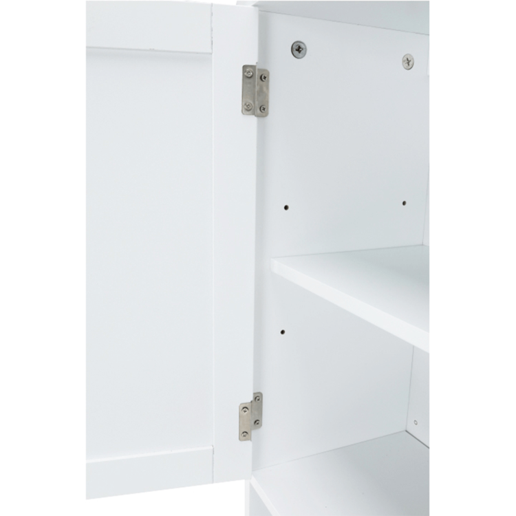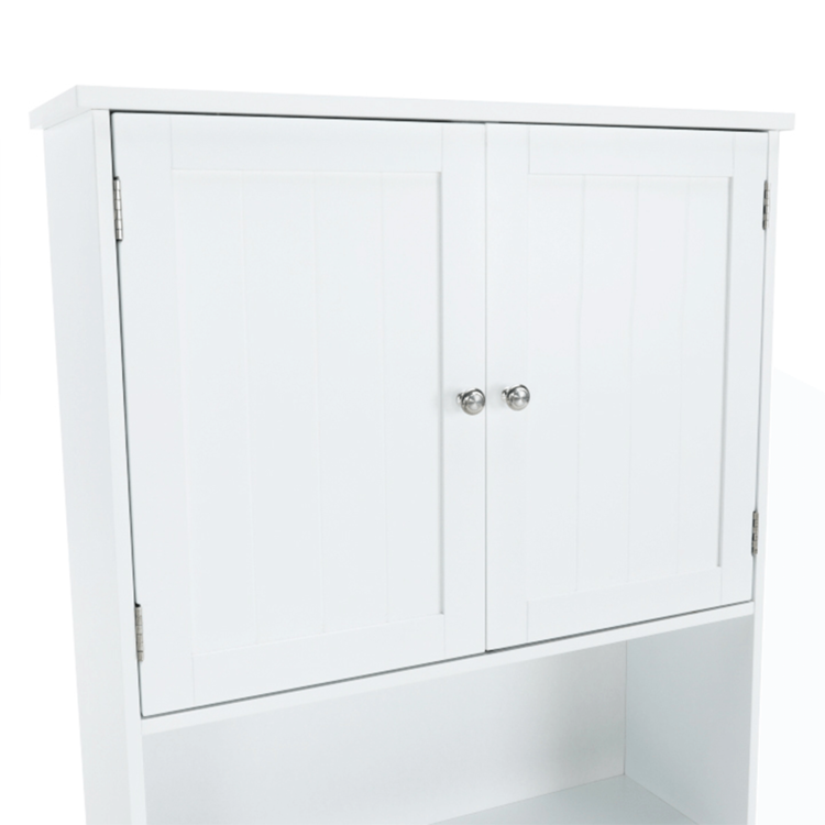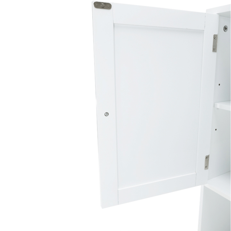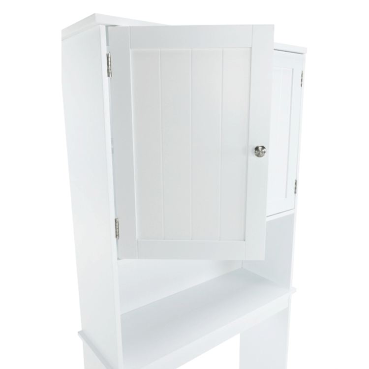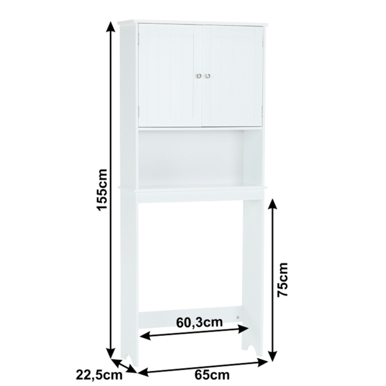 Skrinka je 2-dverová s jednou policou vnútri. Skrinka disponuje aj jedným otvoreným úložným priestorom. Toto je jednoduché riešenie, ako využiť priestor nad WC, užitočné najmä do malých kúpeľní.