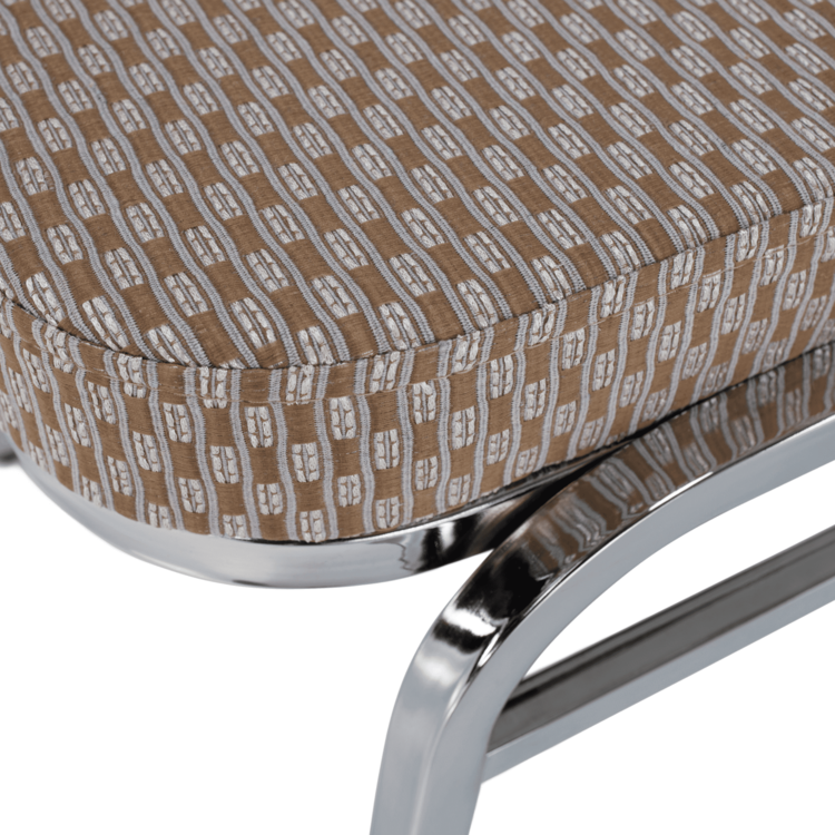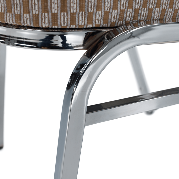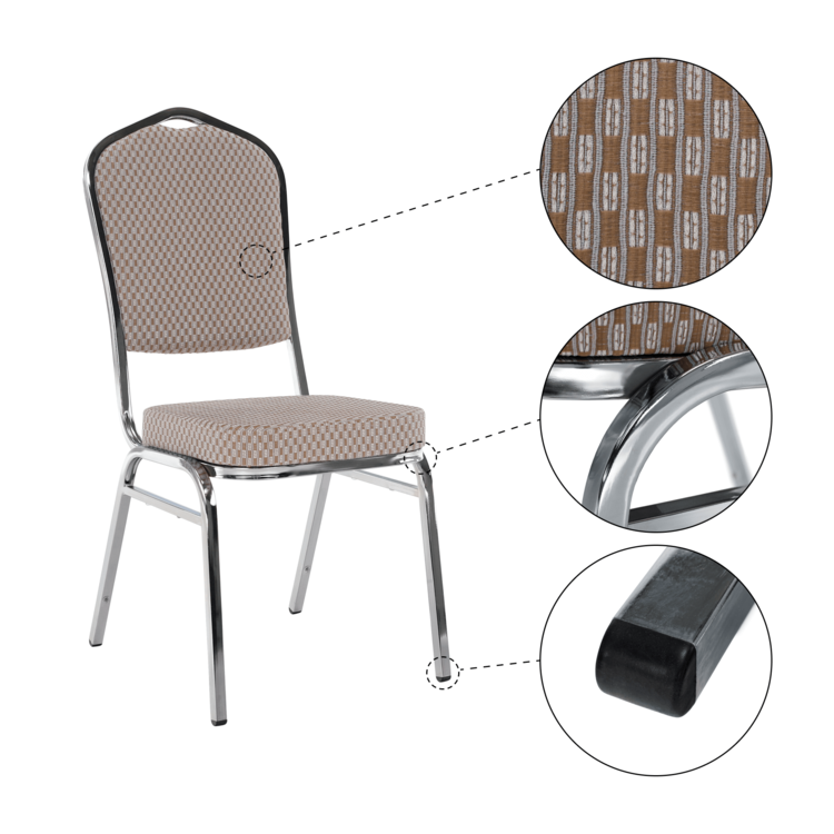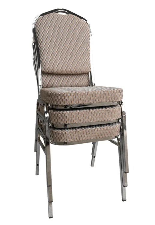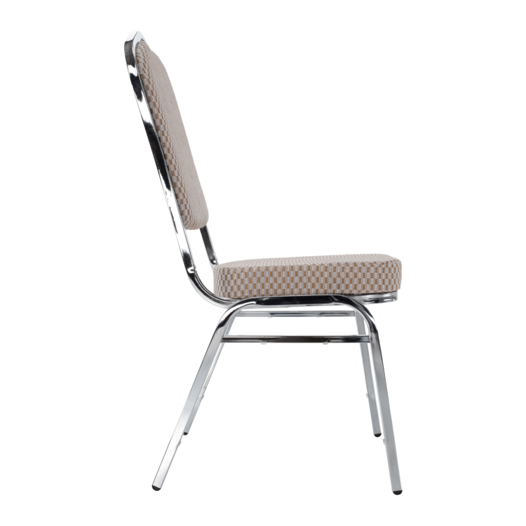 Ak zariaďujete reštauráciu či kaviareň, alebo hľadáte stoličky k banketom či routom, prípadne v zasadačke alebo konferenčnej miestnosti. Stolička je stohovateľná, ľahko stoličky poukladáte na seba. Jednak tým šetríte miesto, na druhej strane viete stoličky jednoducho presúvať medzi miestnosťami. Pre ľahšiu manipuláciu sa vo vrchnej časti rámu nachádza otvor pre lepšie uchopenie. Pevný rám je vyrobený z kovu v chrómovom odtieni. Sedacia časť aj operadlo sú čalúnené béžovou látkou. Určite oceníte aj nosnosť stoličky, ktorá dosahuje až 130 kg.