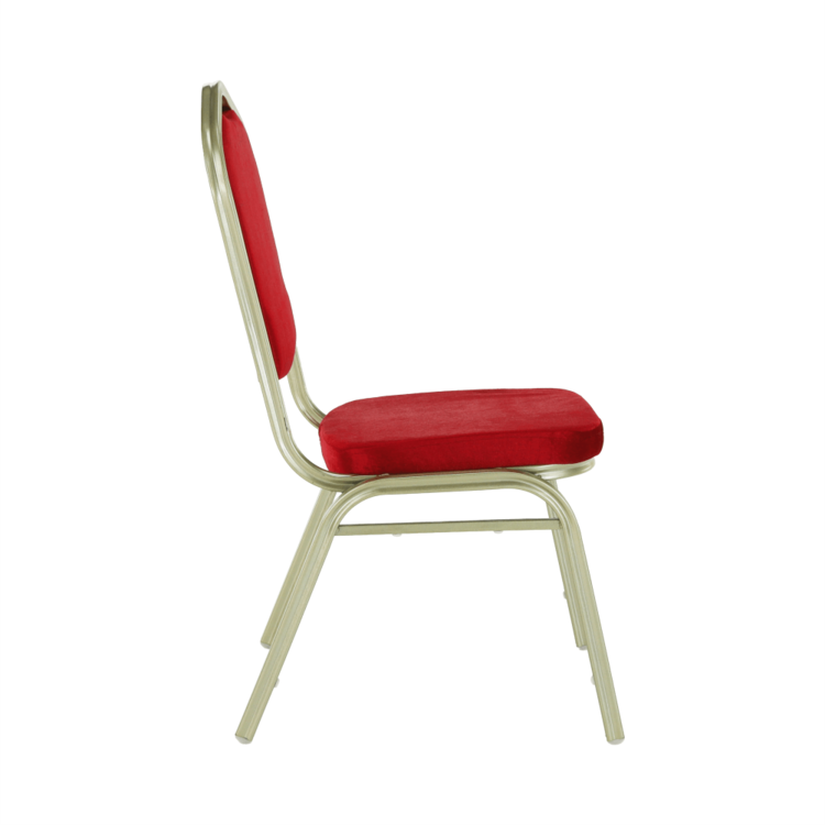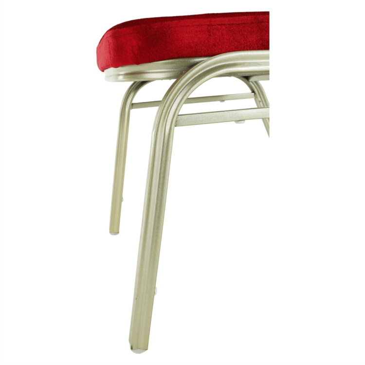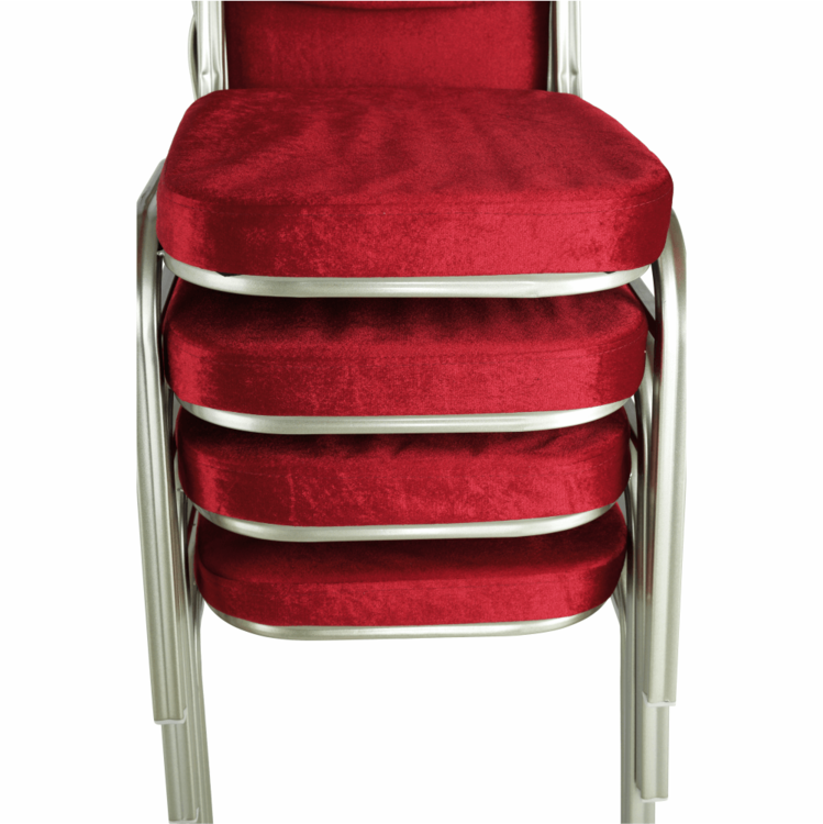 Ak zariaďujete reštauráciu či kaviareň, alebo hľadáte stoličky k banketom či routom, prípadne v zasadačke alebo konferenčnej miestnosti. Stolička je stohovateľná, ľahko stoličky poukladáte na seba. Jednak tým šetríte miesto, na druhej strane viete stoličky jednoducho presúvať medzi miestnosťami. Pre ľahšiu manipuláciu sa vo vrchnej časti rámu nachádza otvor pre lepšie uchopenie. Pevný rám je vyrobený z kovu v odtieni champagne. Sedacia časť aj operadlo sú čalúnené bordovou látkou. Určite oceníte aj nosnosť stoličky, ktorá dosahuje až 100 kg.