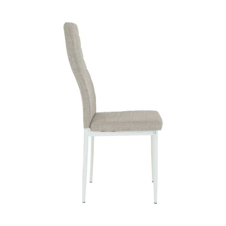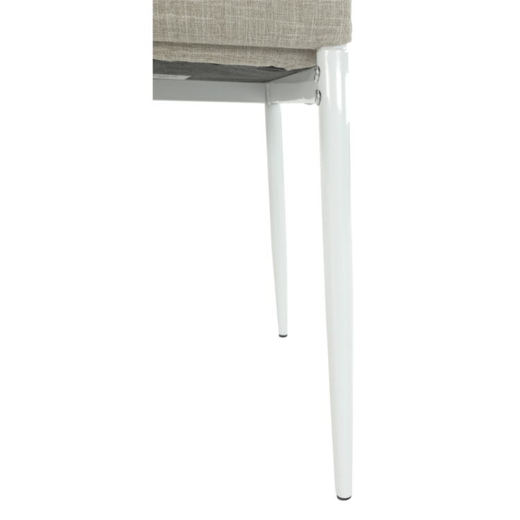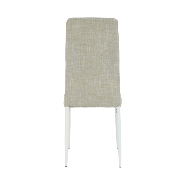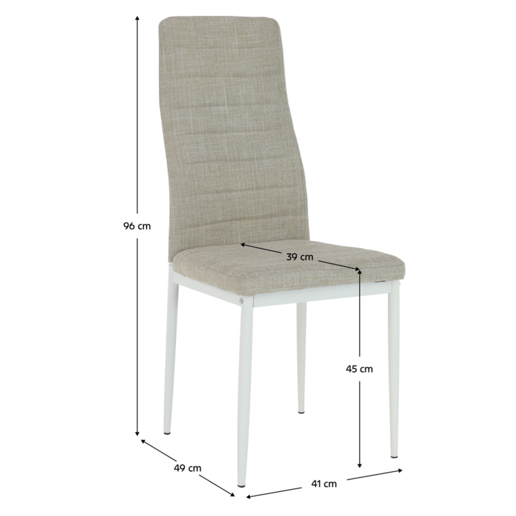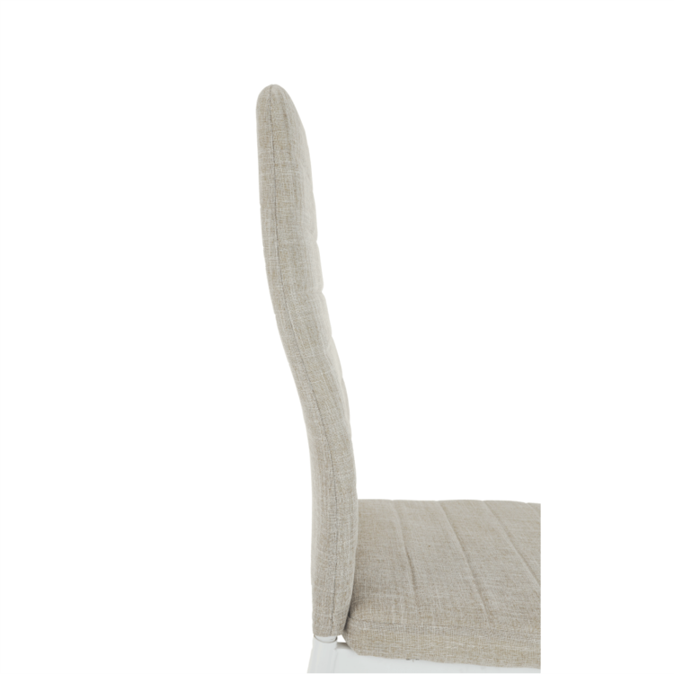 Moderná stolička zo série COLETA NOVA v béžovej látke rozžiari každú miestnosť. Stabilný kovový rám vo farebnom prevedení bielazase dodáva pocit istoty. Táto kráska sa pýši vysokou opierkou chrbta. S komfortnou výškou sedu 45 cm si budete môcť vychutnať nedeľný obed v absolútnom pohodlí.