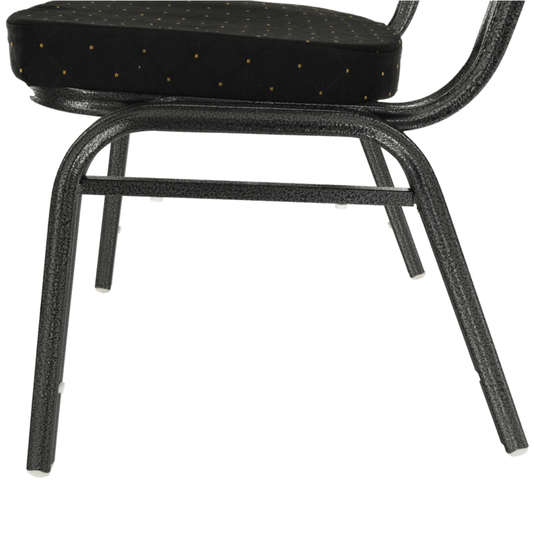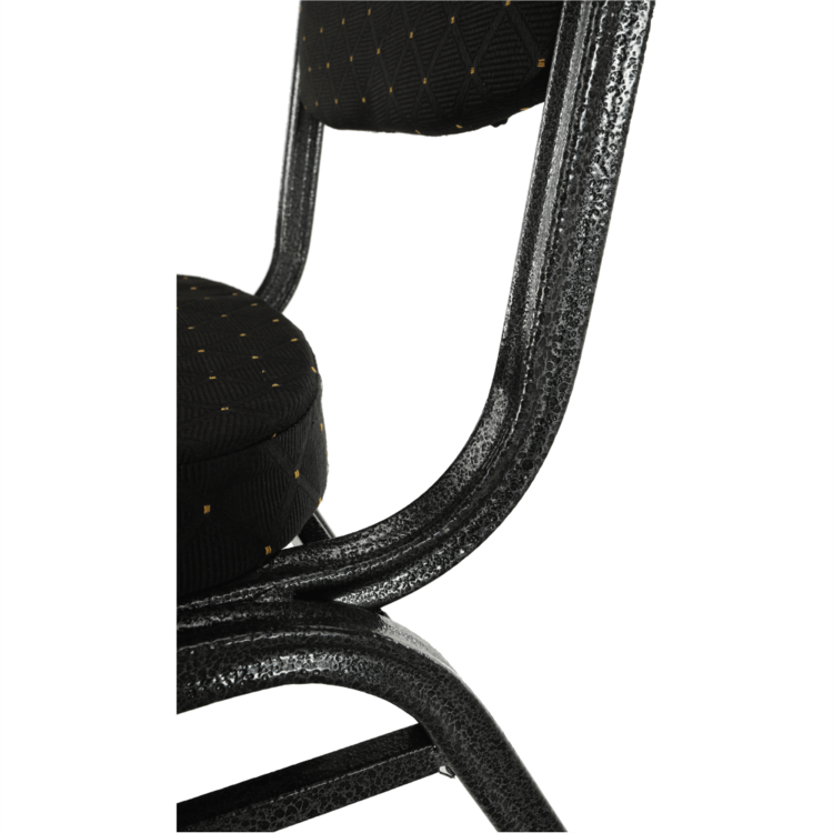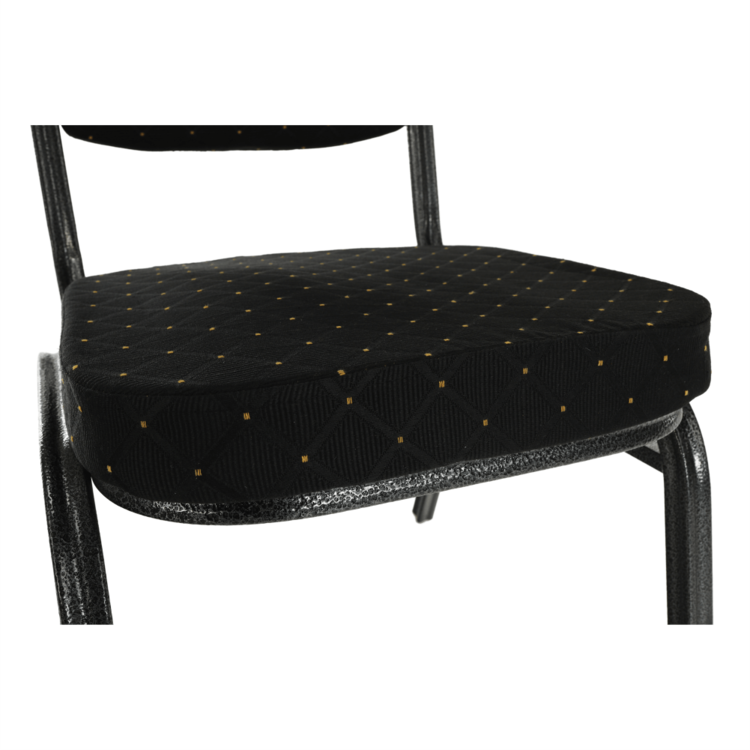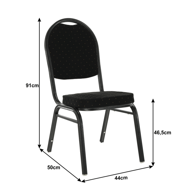 Pohodlná a stohovateľná, čo znamená, že je možné uložiť viac kusov na seba a jednoducho ich presúvať. Poťah je veľmi príjemný a zabezpečuje pohodlné sedenie aj po dlhšej dobe. Oblečená je v čiernej látke zladenej so sivým kladivkovým rámom. Určite oceníte aj nosnosť stoličky, ktorá dosahuje až 100 kg.