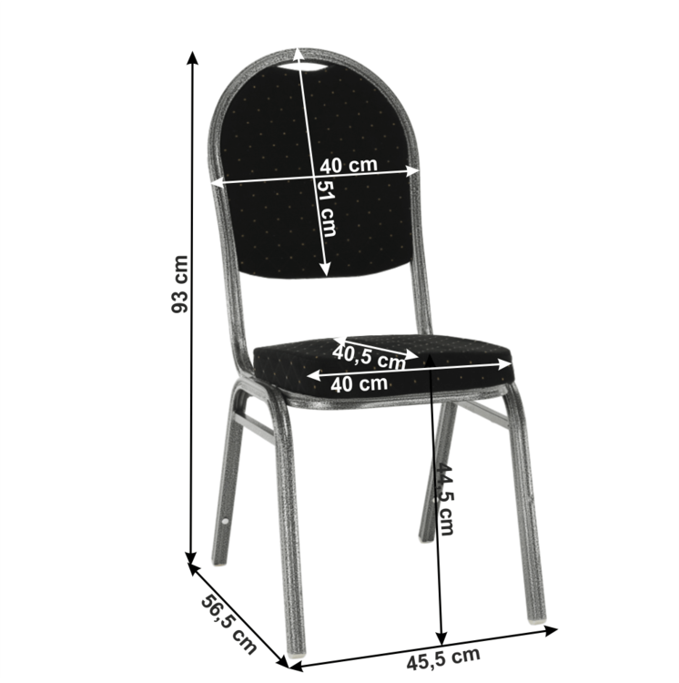 Pohodlná a stohovateľná, čo znamená, že je možné uložiť viac kusov na seba a jednoducho ich presúvať. Poťah je veľmi príjemný a zabezpečuje pohodlné sedenie aj po dlhšej dobe. Oblečená je v čiernej látke zladenej so sivým kladivkovým rámom. Určite oceníte aj nosnosť stoličky, ktorá dosahuje až 130 kg.