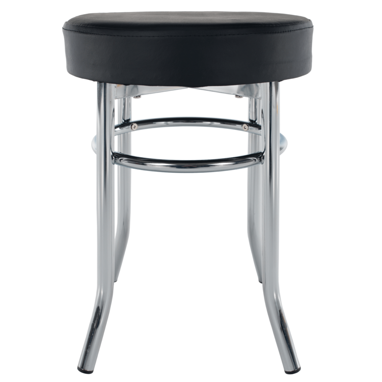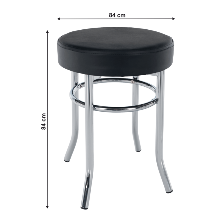 Konštrukcia je z kovu vo farbe chróm, je stabilná a pevná, s nosnosťou 100 kg. Sedacia časť je čalúnená bielou ekokožou.