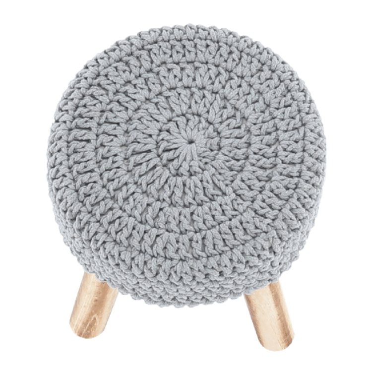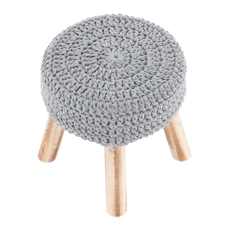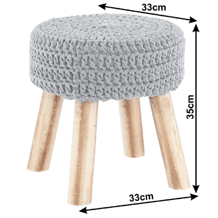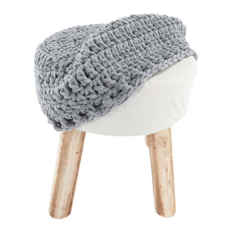 Taburet z luxusnej vlny v jemnej sivej farbe, doplnený drevenými nohami zapadne do každého interiéru.