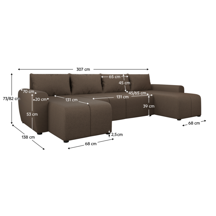 Rozmery (ŠxHxV): 307x138/138x73/82 cm