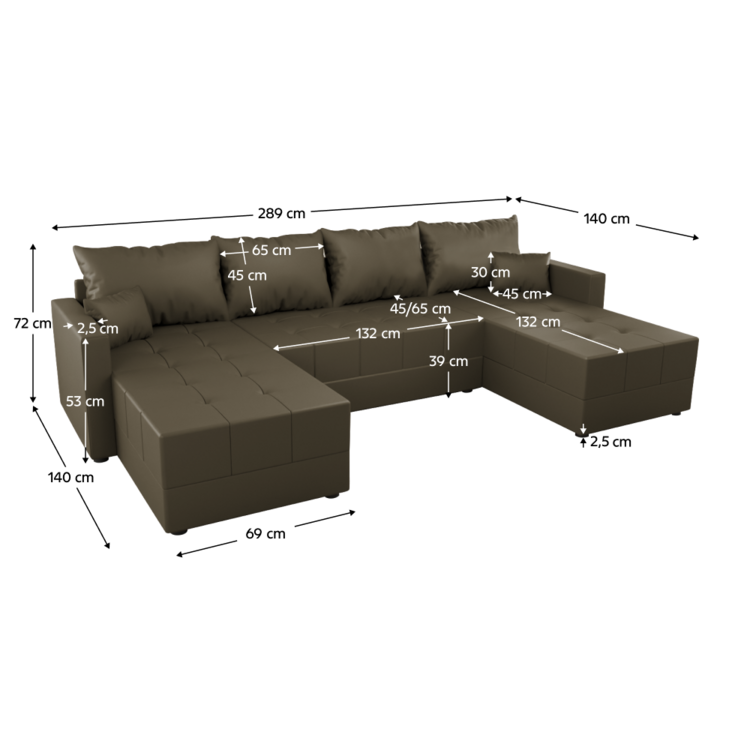 Rozmery (ŠxHxV): 289x140/140x72 cm