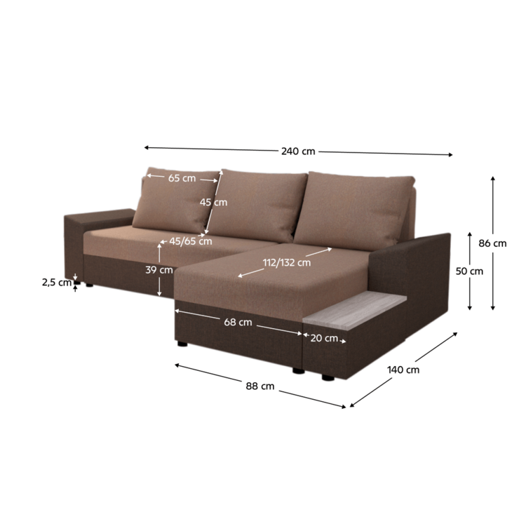 Rozmery (ŠxHxV): 240x140x86 cm