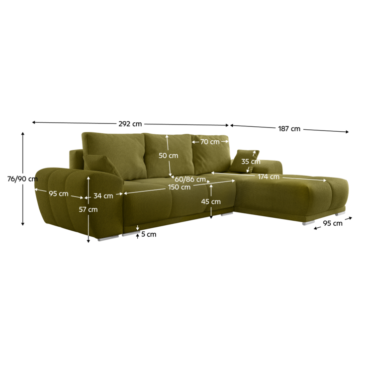 Rozmery (ŠxHxV): 292x187x76/90 cm