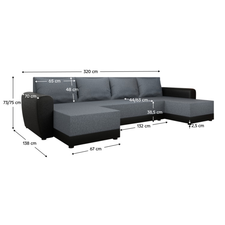 Rozmery (ŠxHxV): 320x138/138x73/75 cm