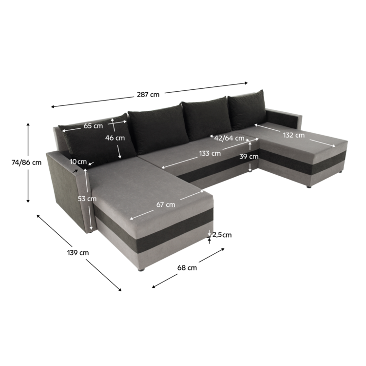 Rozmery (ŠxHxV): 287x139/139x74/86 cm