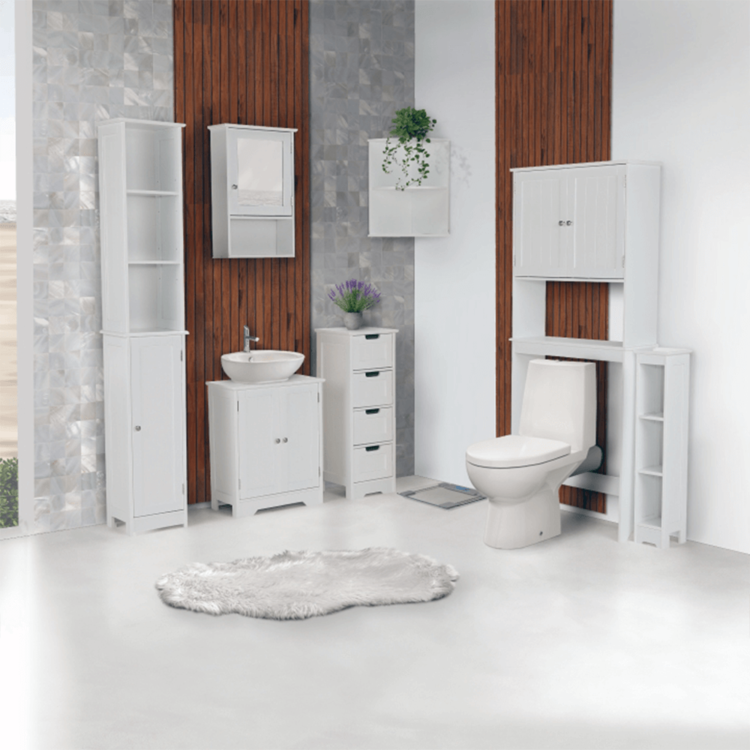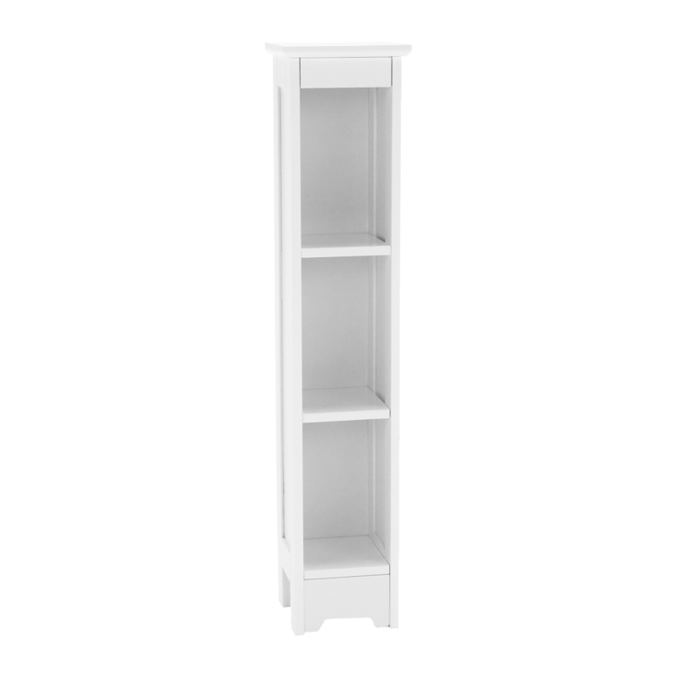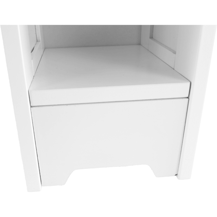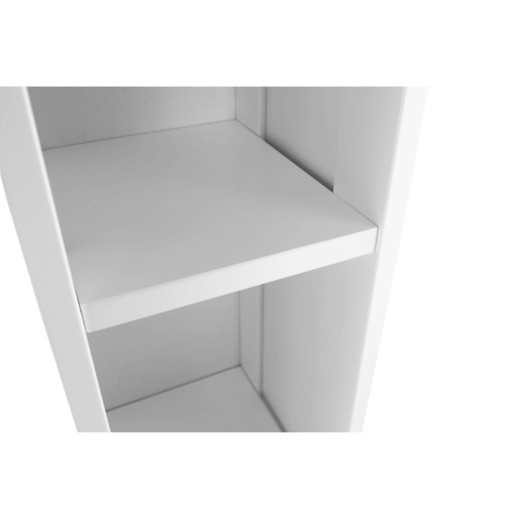 Regál je otvorený s dvomi policami, kde si môžete uložiť hygienické potreby, uteráky alebo čistiace prostriedky.