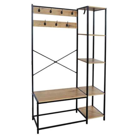 Kvalitné spracovanie kovu v kombinácii s drevom. Vyrobený je v čiernom lesku, doplnený prírodným drevom.