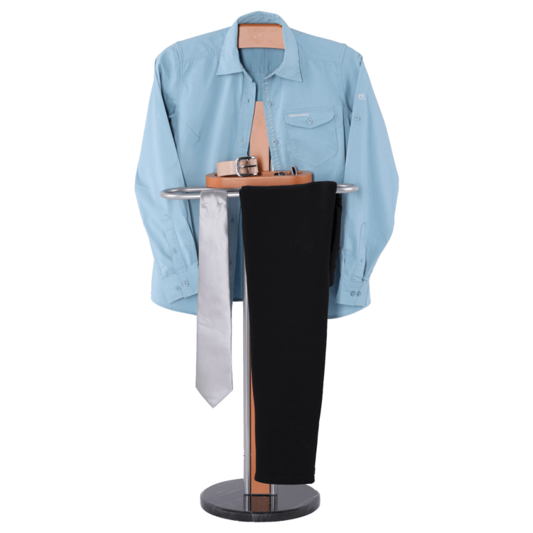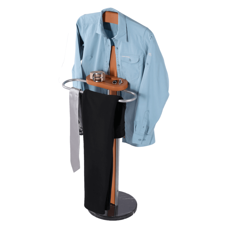 Vešiak-sluha, materiál: kov + drevo + mramor, prevedenie: kov - strieborná, Drevo - buk, mramor - čierna,