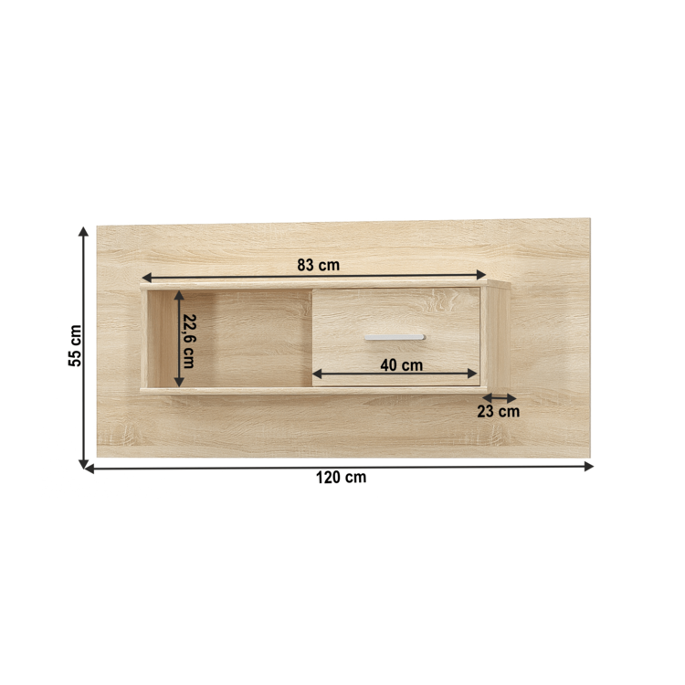 Vyrobená je z kvalitnej DTD laminovanej v prevedení dub sonoma. Ponúka úložný priestor v podobe jednej skrinky a otvorenej police.
