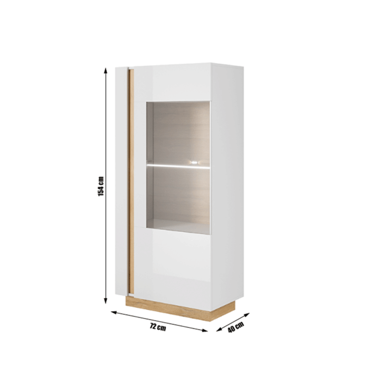 Nízka vitrína 72 je s dvierkami. Ak hľadáte úložný priestor, ktorý by bol navyše v modernom dizajne, táto vitrína je pre vás tá pravá. Ponúka ukladací priestor v podobe 3 políc, jedna polica je sklená.
