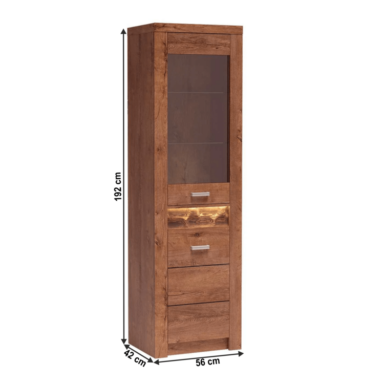 Disponuje hornou jednodverou skrinkou so sklenenými dverami. Dolná skrinka je jednodverová.