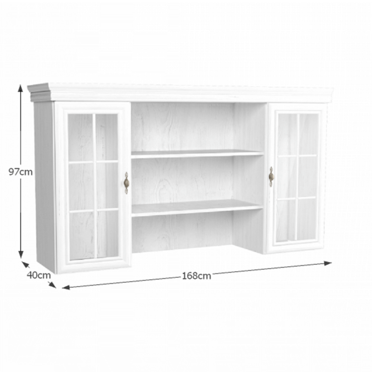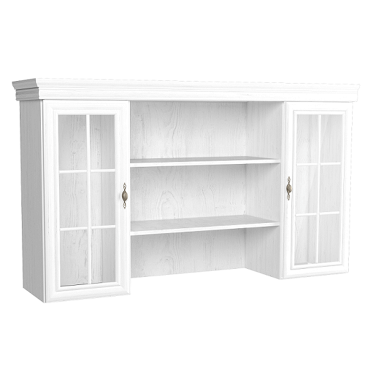 Nadstavec na komodu KORA KN5 je kombinovaný. Úložný priestor poskytujú dve vitrínové skrinky. Skrinky sú dvomi policami rozdelené na tri odkladacie plochy. Dvere vitrín sú so sklom. Stredná časť s dvomi policami je otvorená.