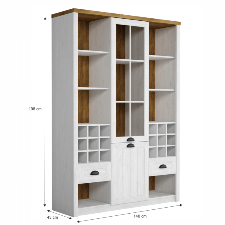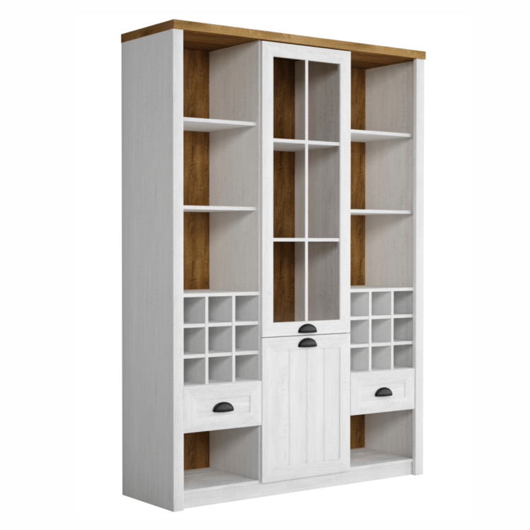 Vitrína W2D2S PROVANCE ponúka uzavretý aj otvorený úložný priestor. Je dvojdverová a vybavená originálnymi úchytkami. Obsahuje dva šuplíky, police a priestor na fľašky, čo ju robí praktickou a štýlovou voľbou do vášho interiéru.