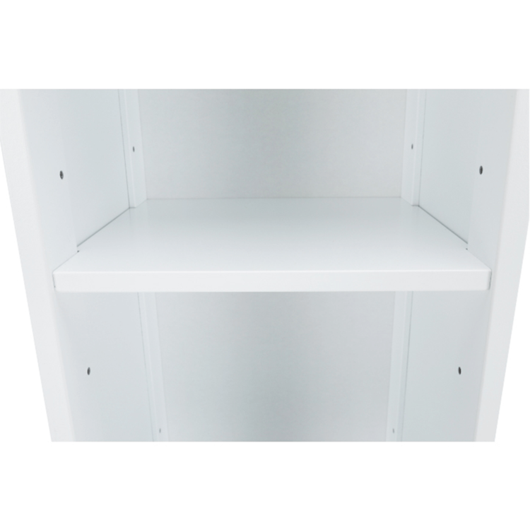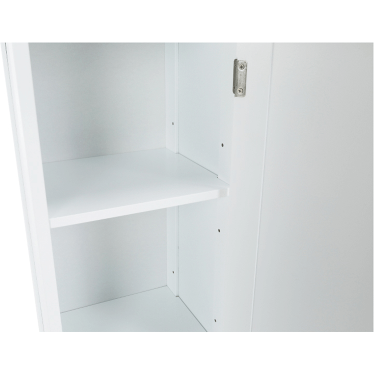 Je jednodverová s otvoreným odkladacím priestorom, ktorý poslúži napríklad na odloženie uterákov, prípadne kozmetických prípravkov, ktoré chcete mať hneď poruke. Vnútri skrinky nájdete ďalšie dve poličky na hygienické potreby, aj čistiace prostriedky. Výhodou je, že šírku medzi jednotlivými policami si viete regulovať podľa potreby vďaka predvŕtaným dierkam.