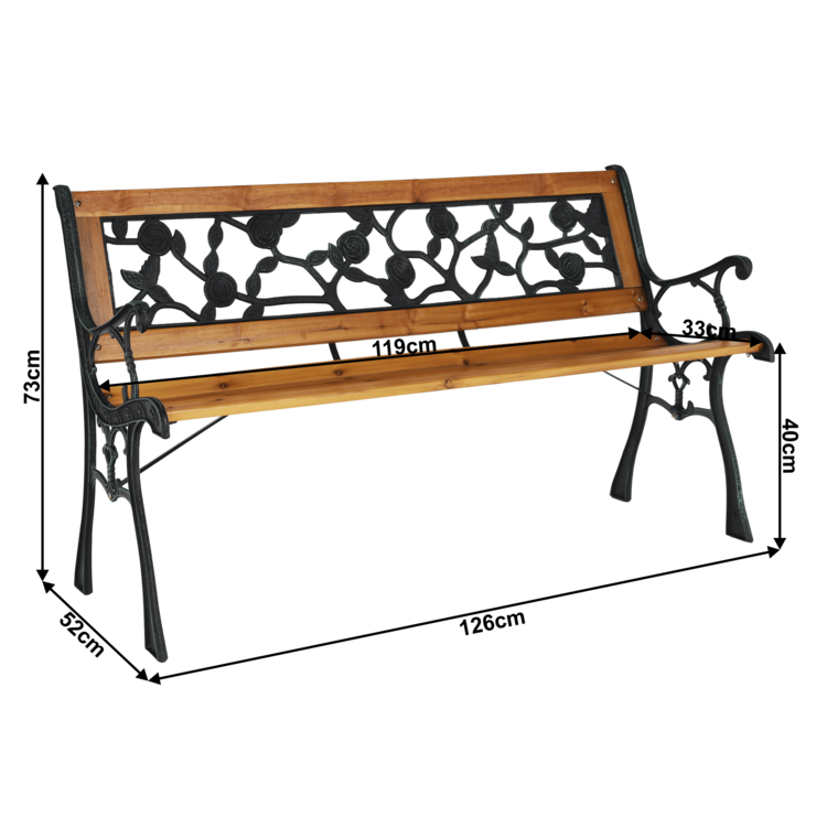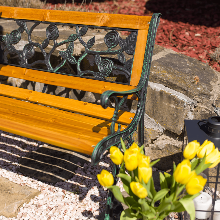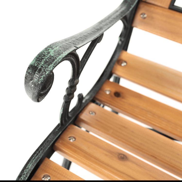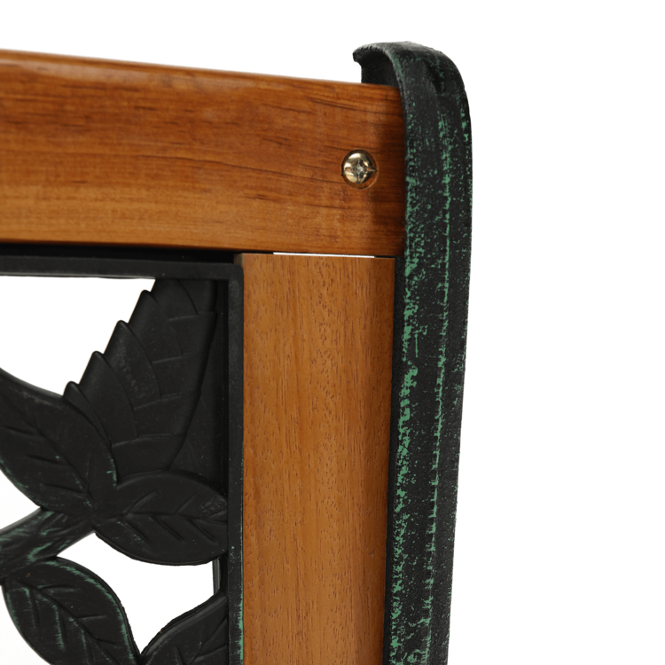 V romantickom štýle, s jemnými ornamentami prichádza, aby doplnila vašu terasu či záhradu. Vyrobená je z kovu, doplnená drevom v prírodnej farbe.