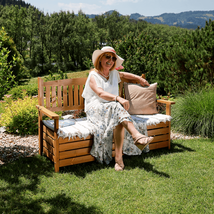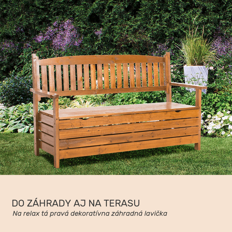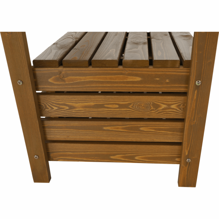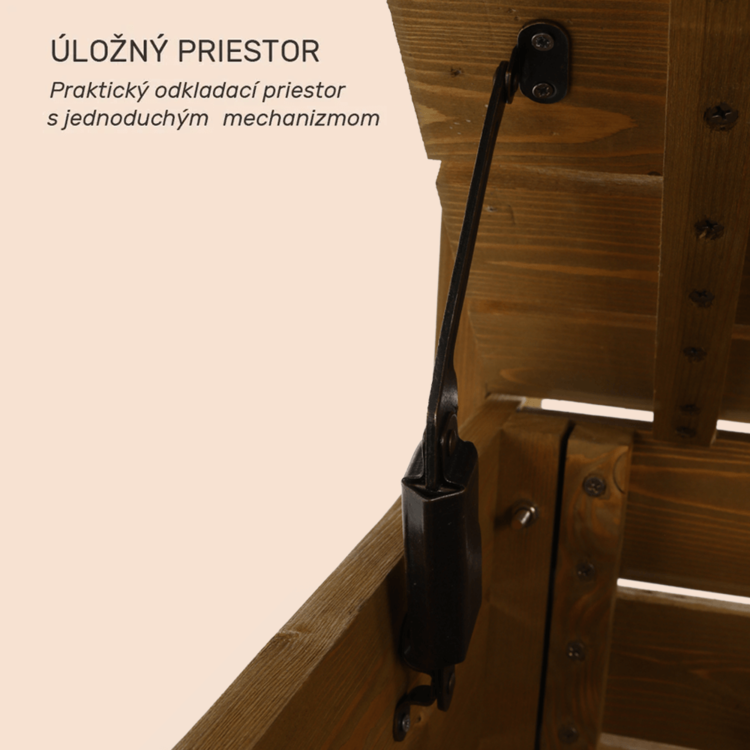 Pohodlie pri sedení vám zabezpečia opierky na ruky na bočných stranách lavice. Úložný priestor môžete využiť na uloženie podušiek, diek a iných potrebných vecí. Táto všestranná lavička dodá vašej záhrade prirodzený šarm. Masívny drevený vzhľad predurčuje lavičku AMULA na umiestnenie do záhradky k chalúpke, vytvorte si rozprávkovú idylku, ktorú vám budú všetci závidieť.