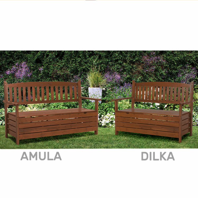 Disponuje úložným priestorom, do ktorého odložíte všetko, čo budete potrebovať. Vychutnajte si teplý letný deň či večernú nočnú oblohu v náruči krásky, ktorá prispeje k vašej pohode. Dilka je k odpočinku ako stvorená. Masívny vzhľad dodáva lavici romantický nádych, ideálna do záhrady , ku chalúpke či do altánku.