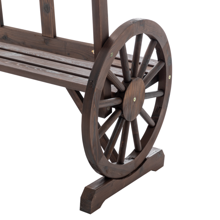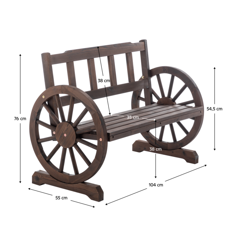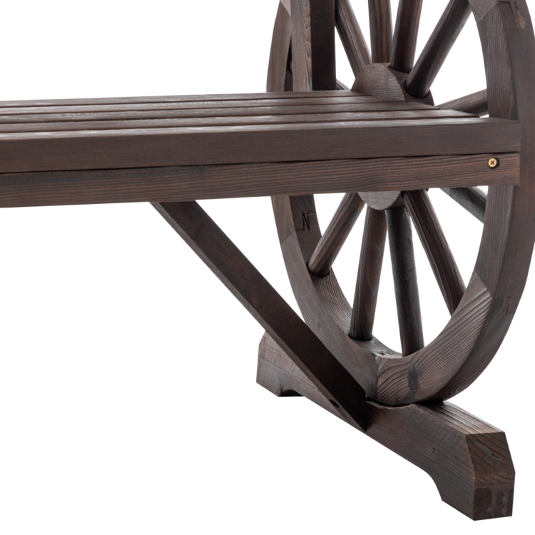 Zaujme vás vidieckym dizajnom, ktorý čerpá inšpiráciu z tradičných vidieckych vozov, čo je viditeľné na bočných oporách v tvare veľkých drevených kolies. Vyrobená je z kvalitného borovicového dreva v hnedej farbe, čo pôsobí pevne a odolne.