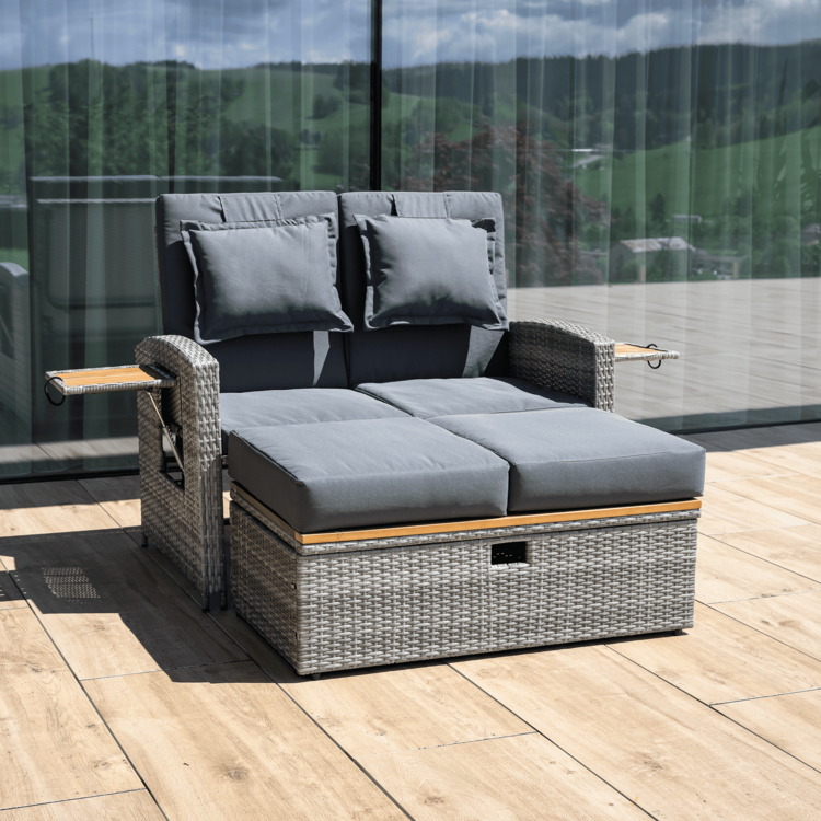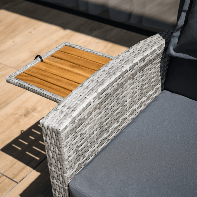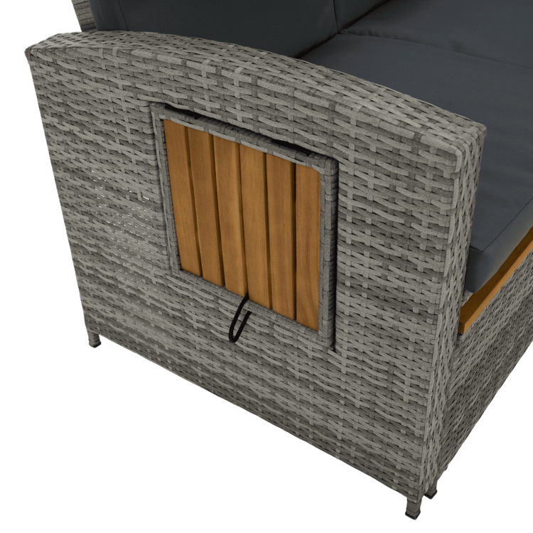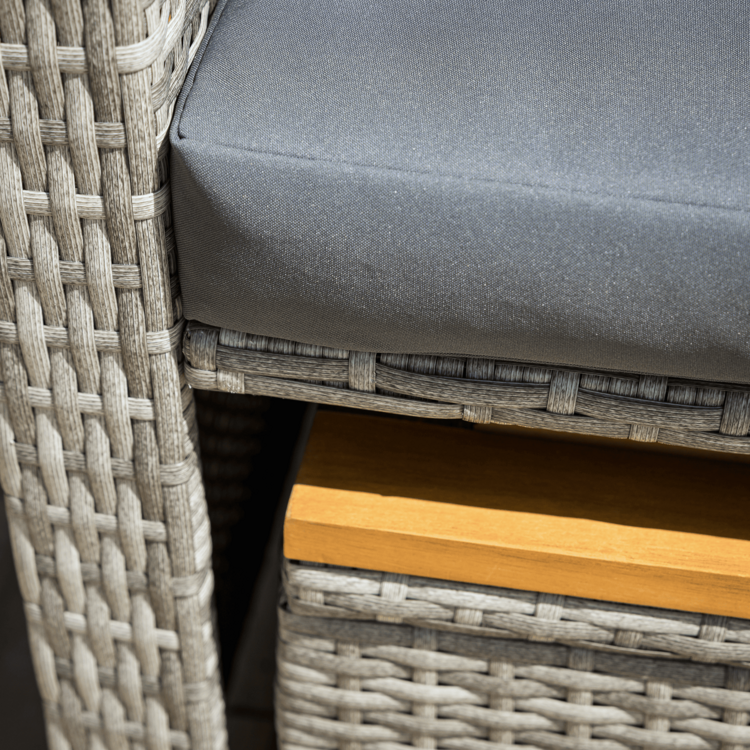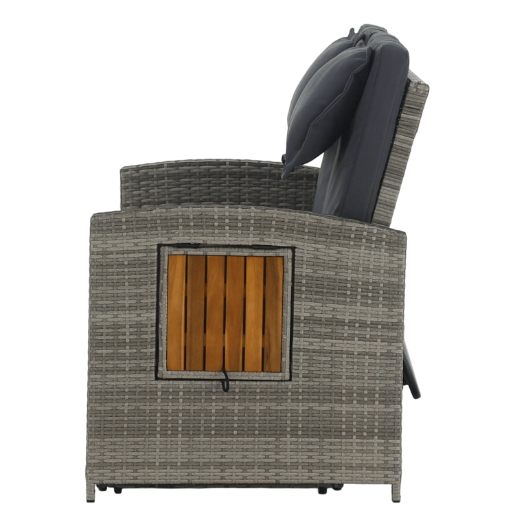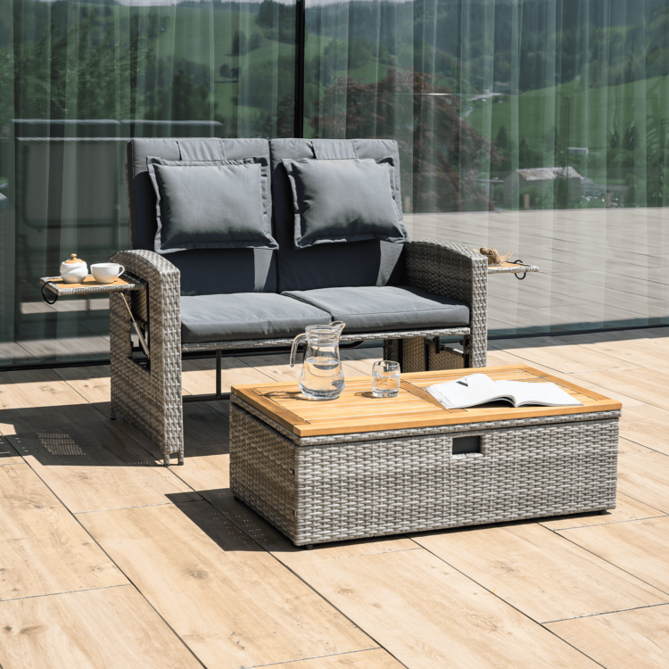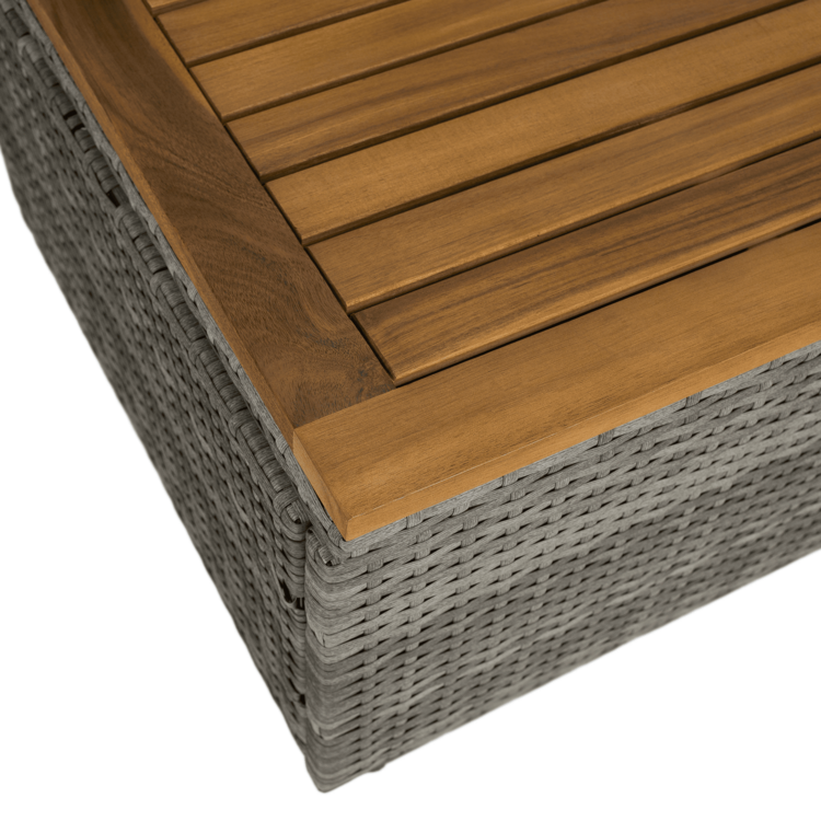 Materiál: technický ratan/oceľ/látka/akáciové drevo