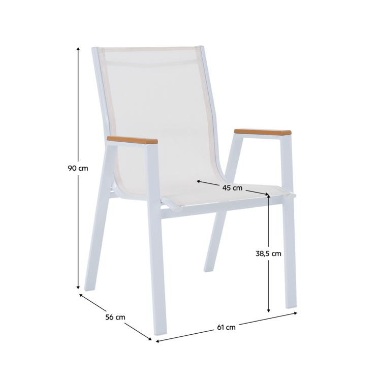 Je vyrobená z umelej látky v bielom farebnom prevedení. Stabilitu zabezpečuje pevná a stabilná konštrukcia z bielej ocele. Opierky na ruku sú v prevedení dub, vyrobené z materiálu polywood. Stolička BONTO sa hodí takmer kdekoľvek, nielen do záhrady. Určite ju uvítate aj na terase, či balkóne.