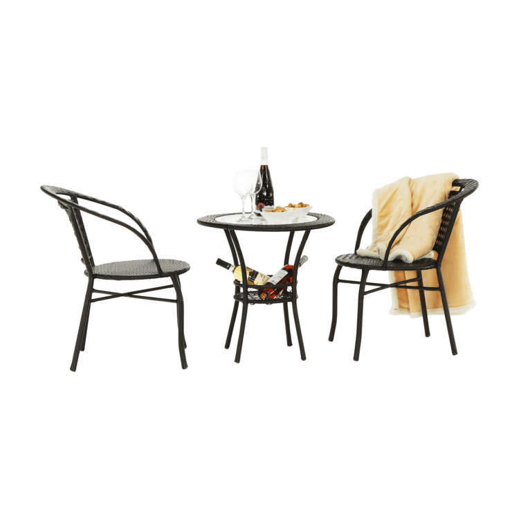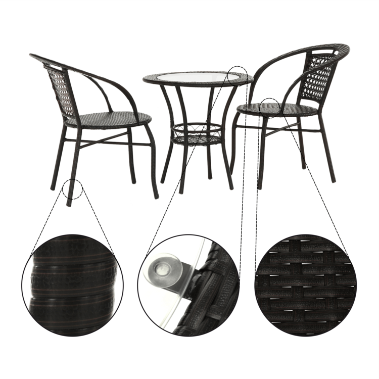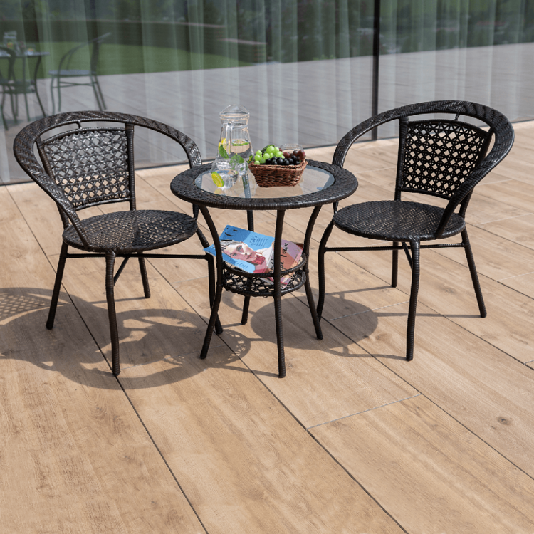 LASAN je ratanový set, ktorý prináša originalitu, praktickosť a eleganciu. Použitý materiál sa môže pýšiť vysokou odolnosťou. Vyrobený je z umelého ratanu v hnedom prevedení. Set vám zabezpečí pohodlie v podobe dvoch kresiel, komfort zvýši okrúhly príručný stolík s vrchnou doskou z tvrdeného skla. Stoličky/kreslá sú stohovateľné, stačí ich jednoducho poukladať na seba, keď ich potrebujete niekam preniesť alebo zazimovať.