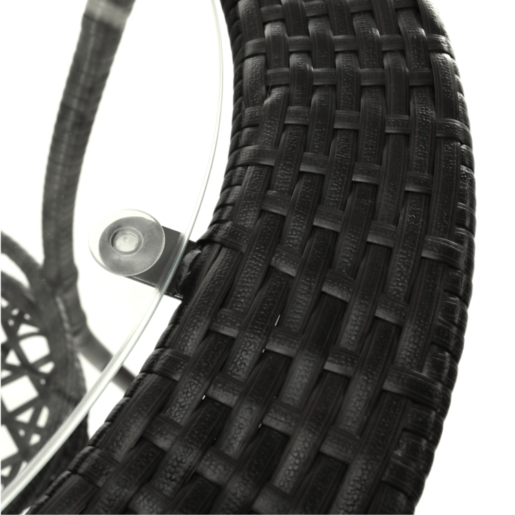 Materiál: umelý ratan/oceľ/tvrdené sklo