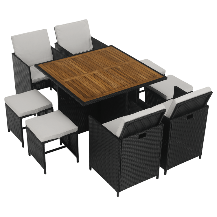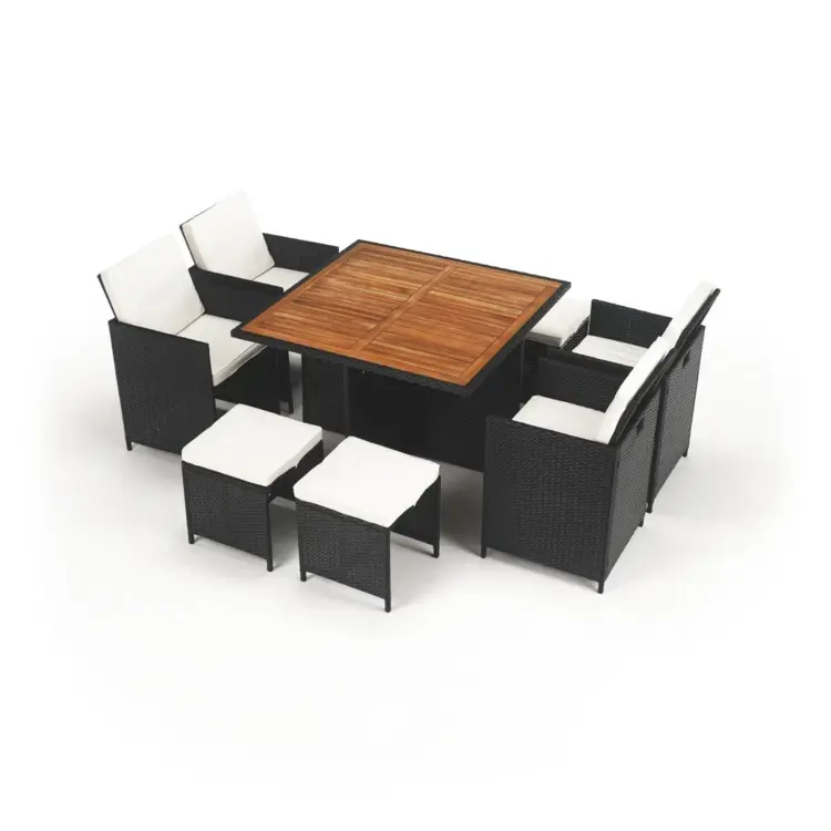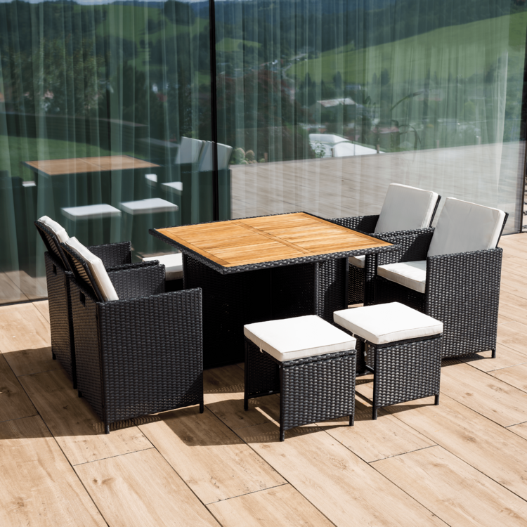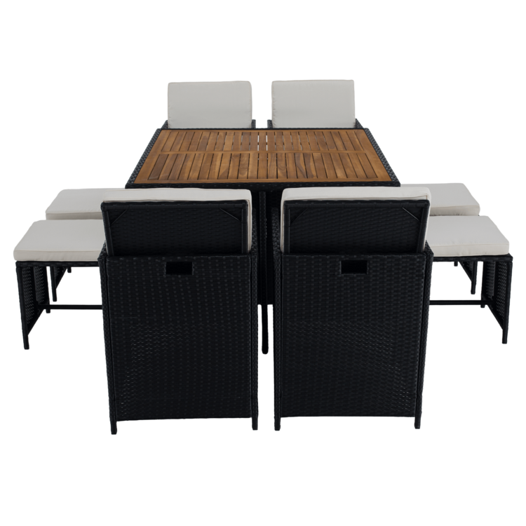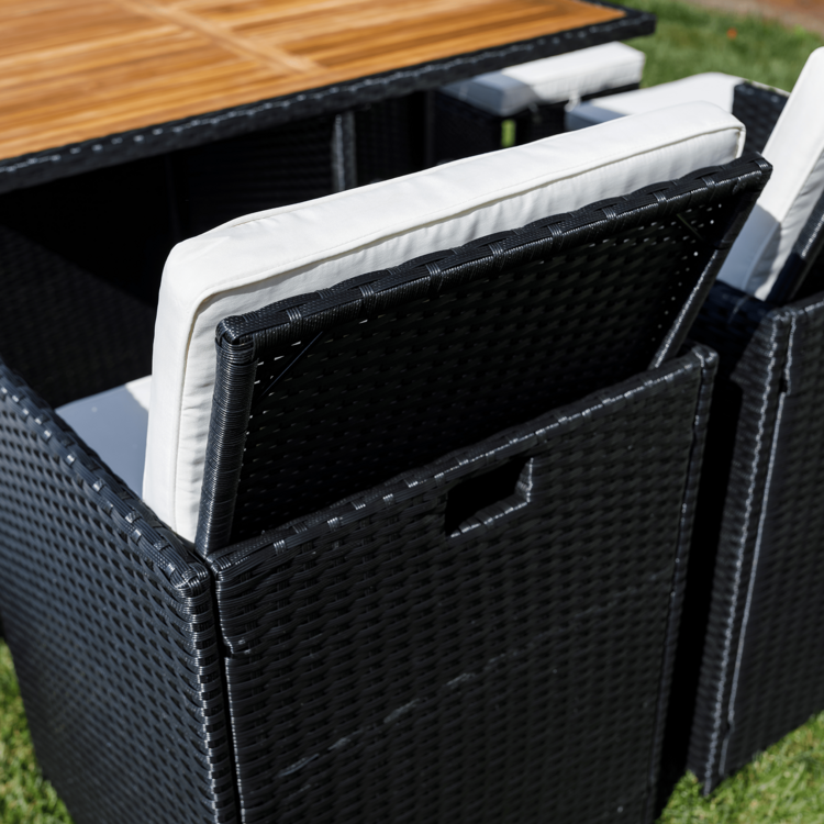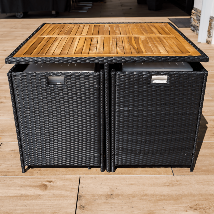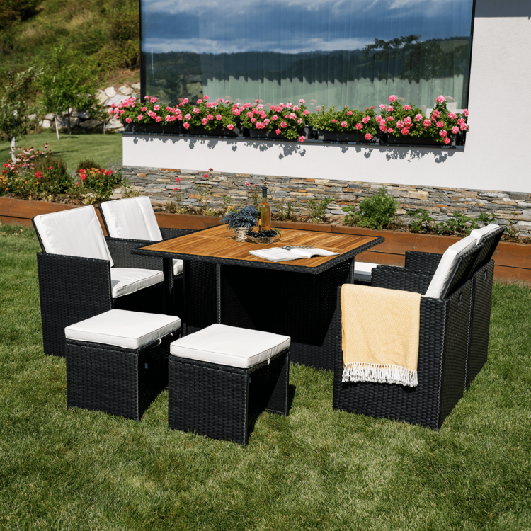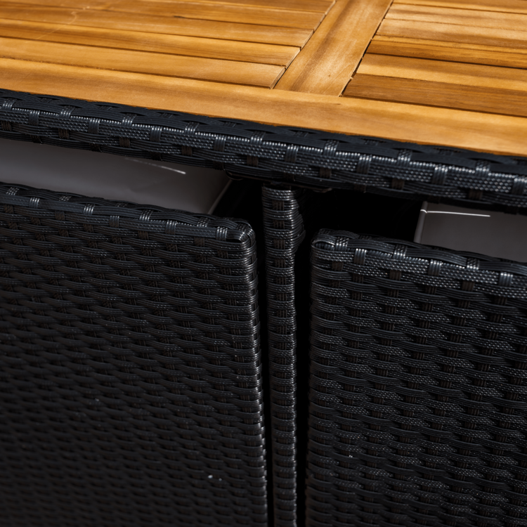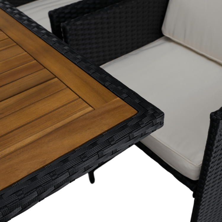 Materiál: technický ratan/oceľ/látka/masívne akáciové drevo