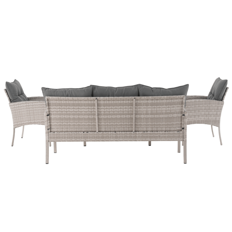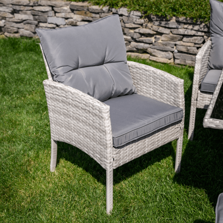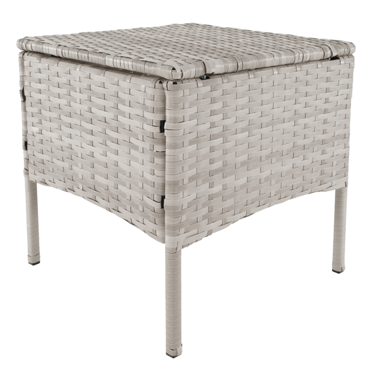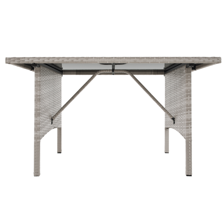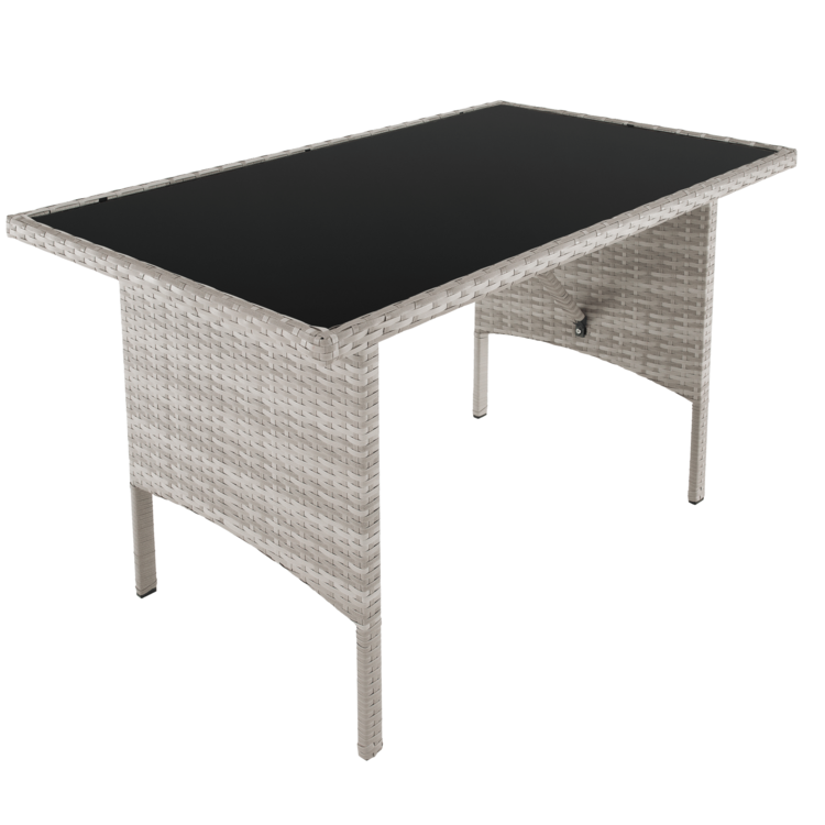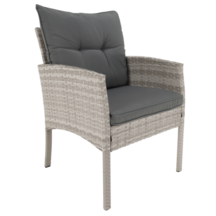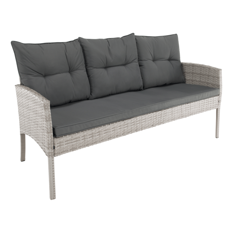 Ratanový 6-dielny set LALEN. Vyrobený je z technoratanu v svetlosivom farebnom prevedení. O stabilitu sa postará pevná kovová konštrukcia. Set tvorí trojsed, kreslá, taburety a jedálenský stôl s tvrdeným sklom, ktorý ponúka miesto na servírovanie akýchkoľvek dobrôt. O pohodlné sedenie a opretie chrbta sa postarajú vankúše v svetlosivej farbe, ktoré sú taktiež súčasťou setu. Poťahy na vankúšoch sú vodeodolné.
